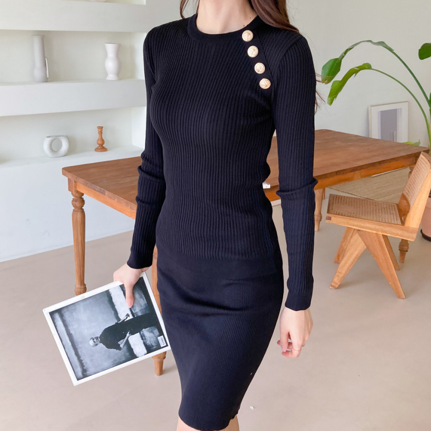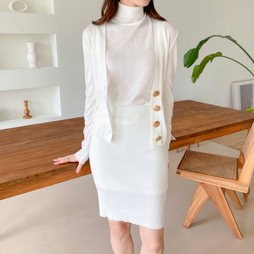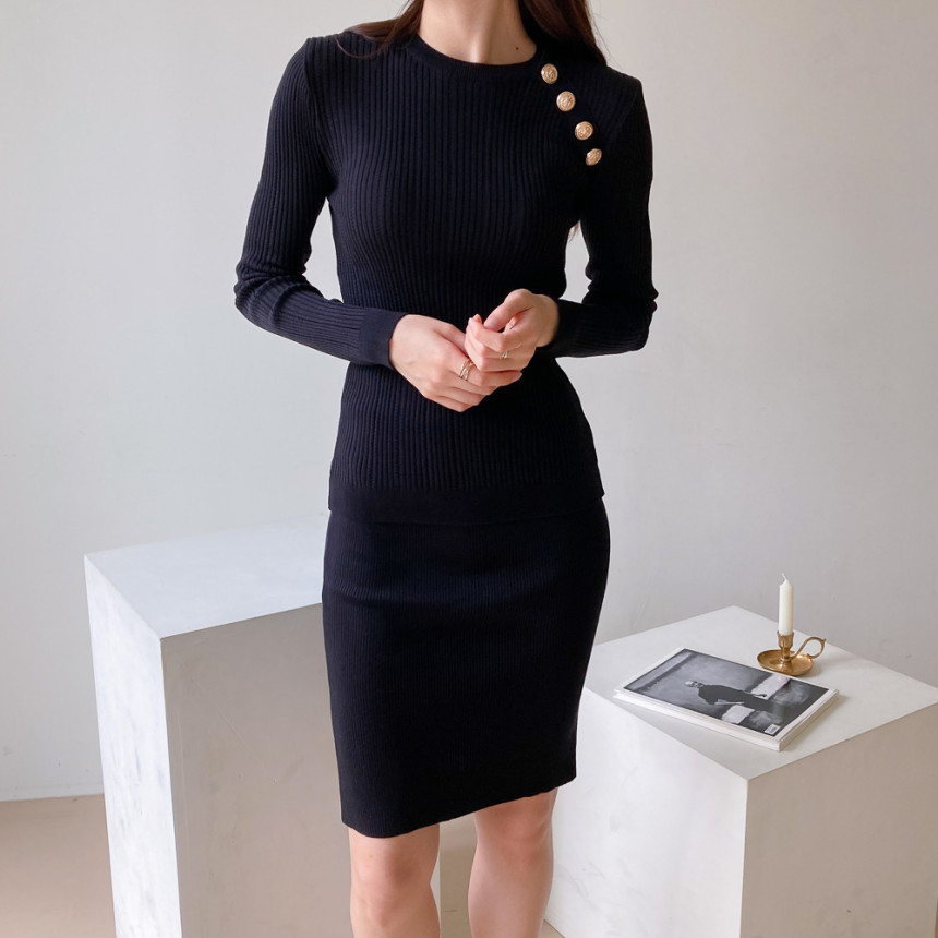 H라인으로 떨어지는 심플한 디자인의 니트 스커트예요.