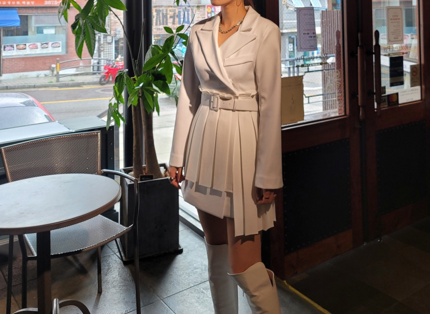 플리츠자켓원피스_화이트