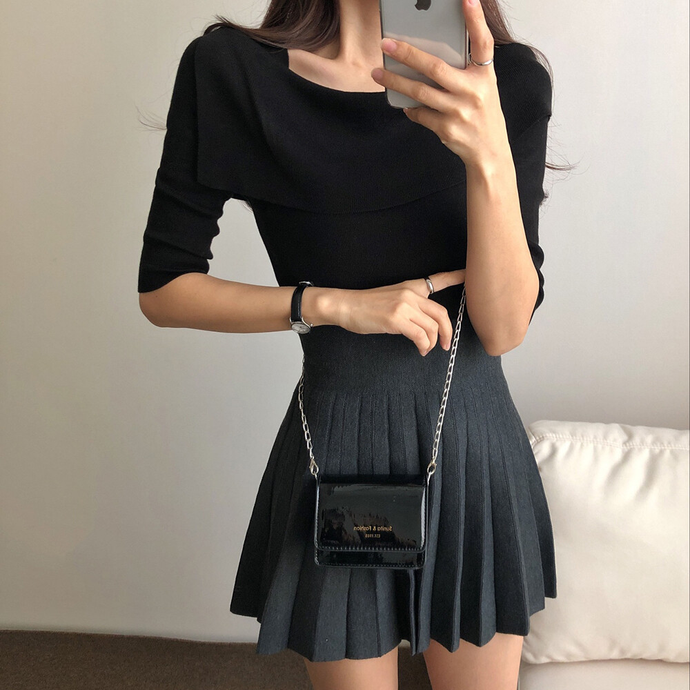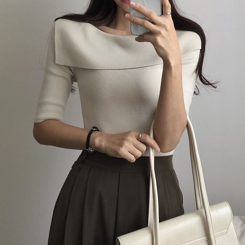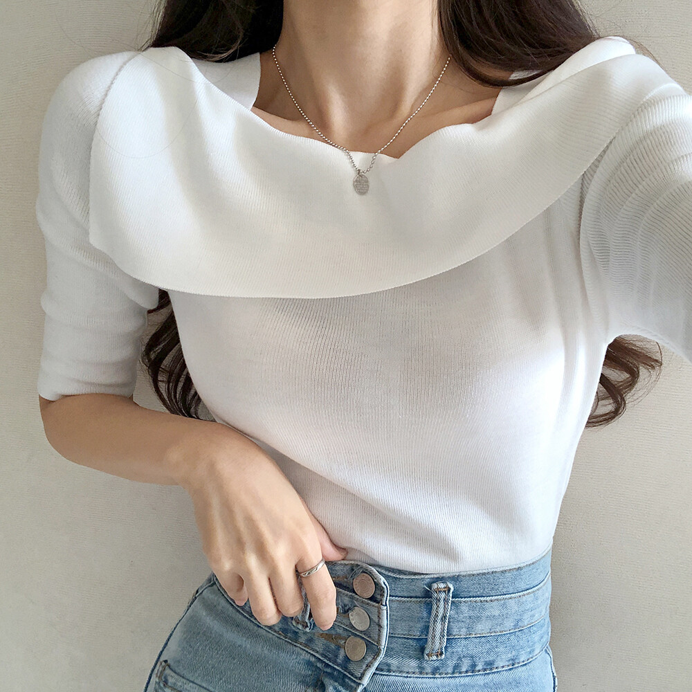 여성스러운 네크라인의 여름 반팔니트예요.