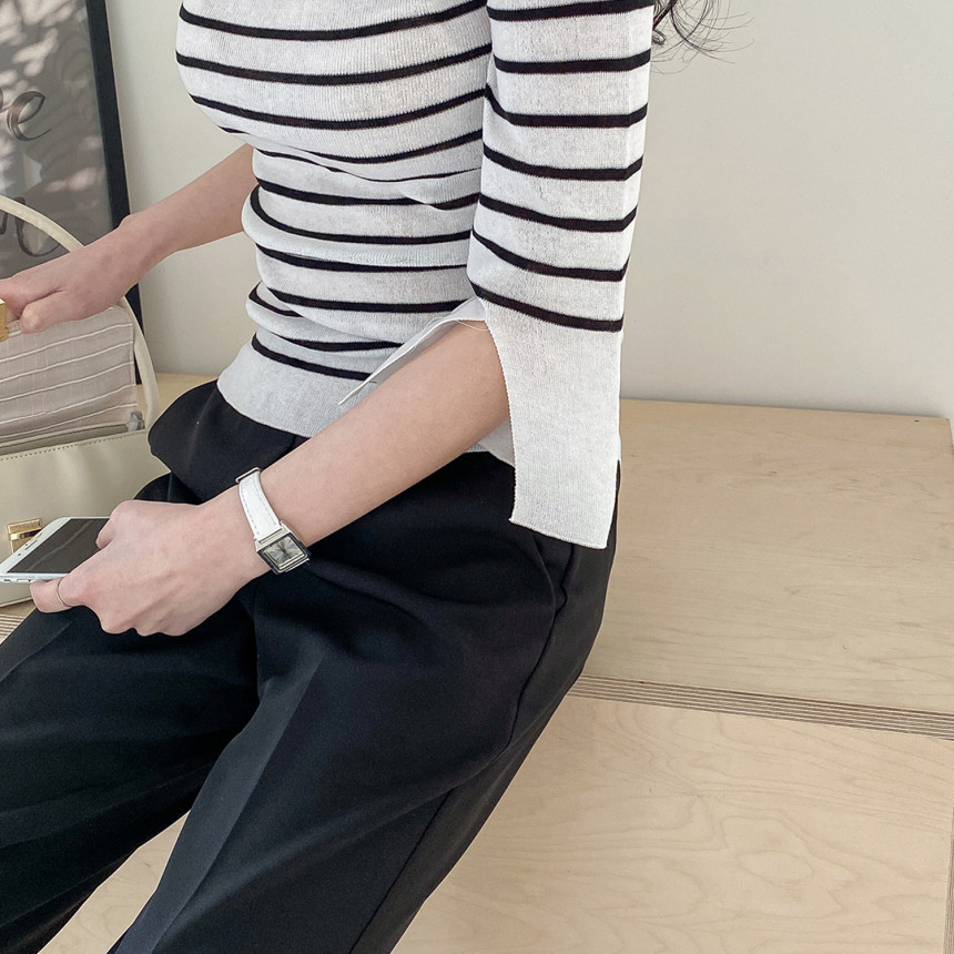 7부 소매 디자인에 소매 밑단에는 트임 디테일로 포인트를 주었어요.