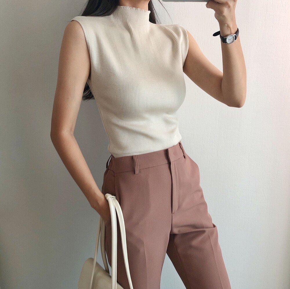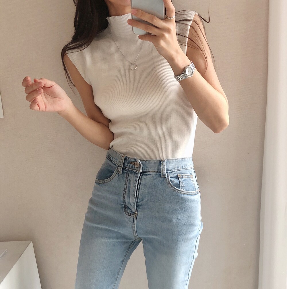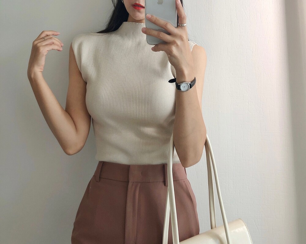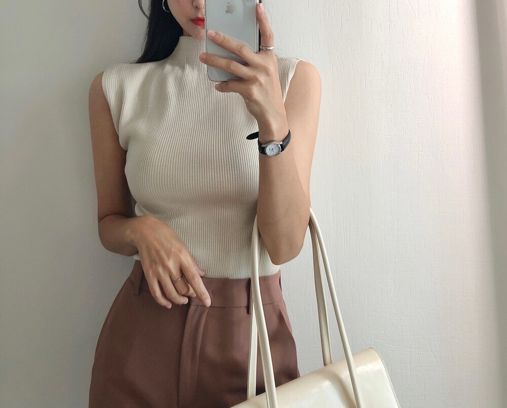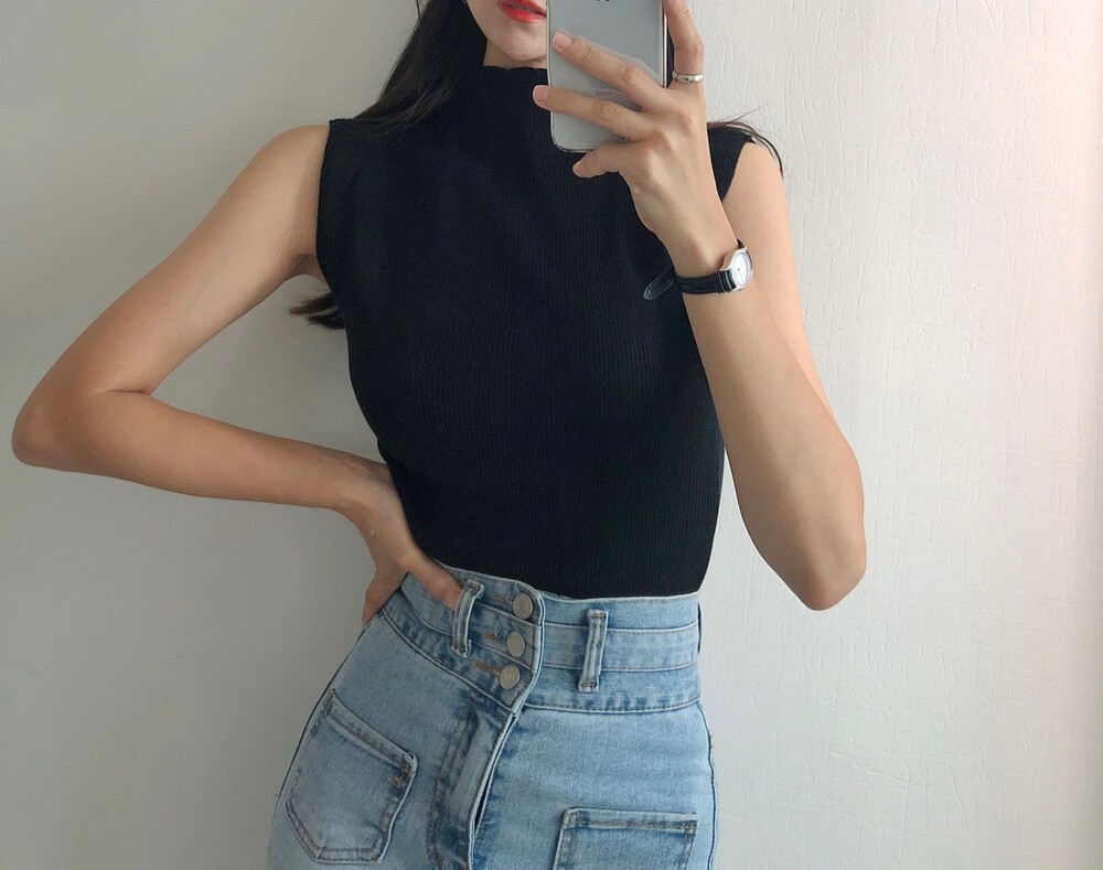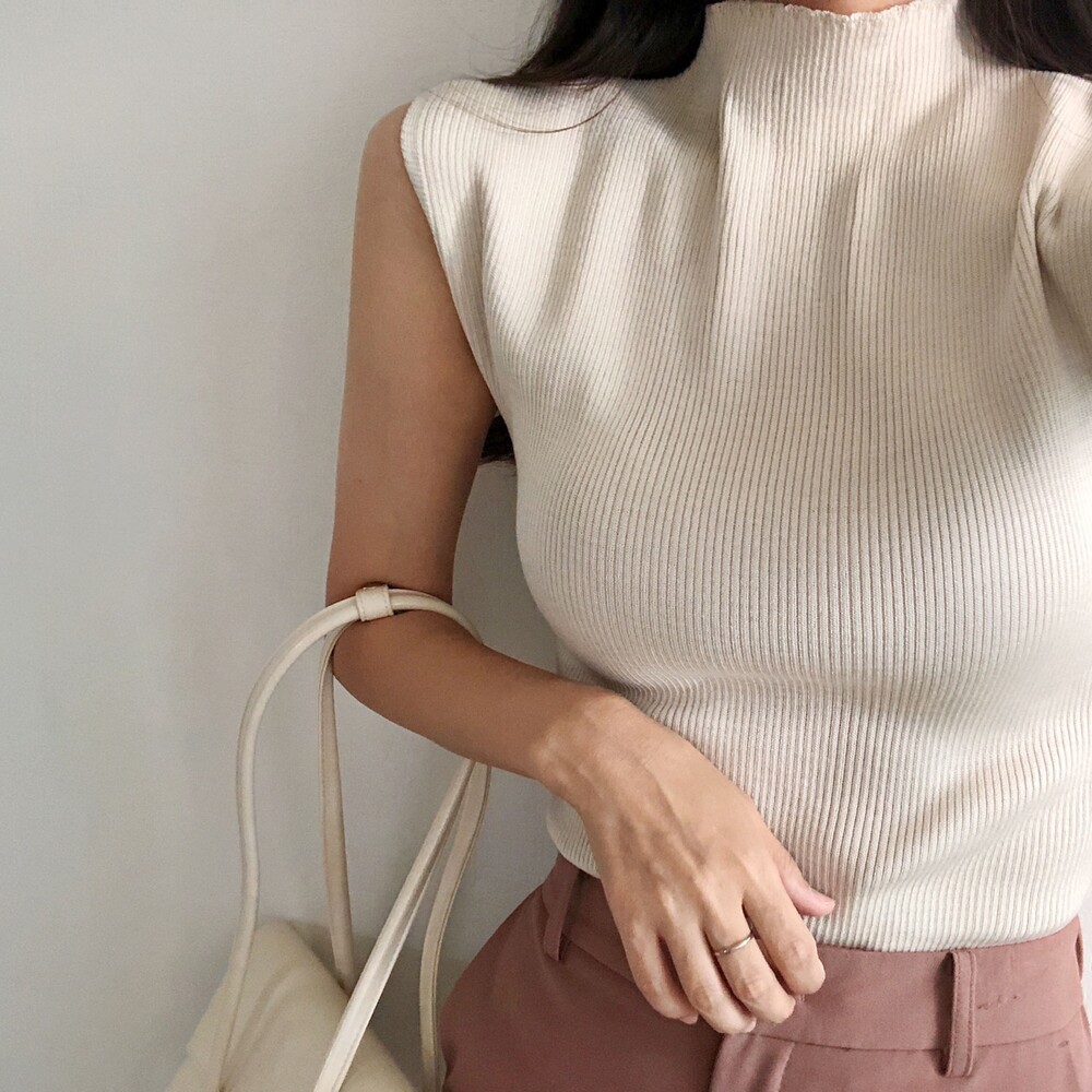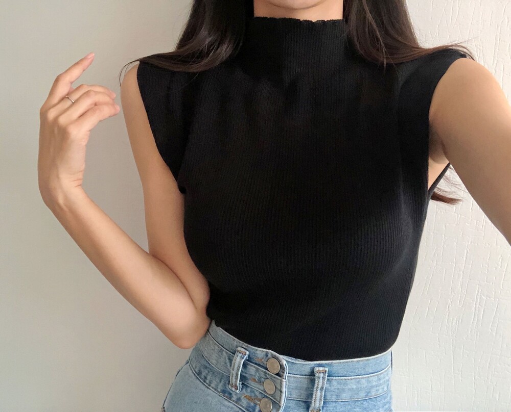 반터틀넥의 민소매 니트예요.