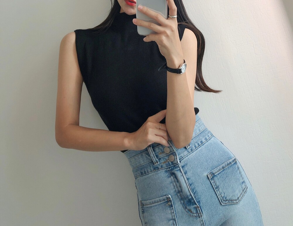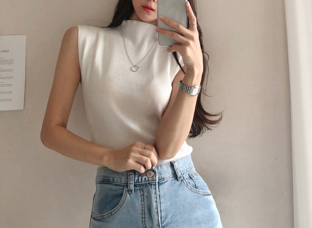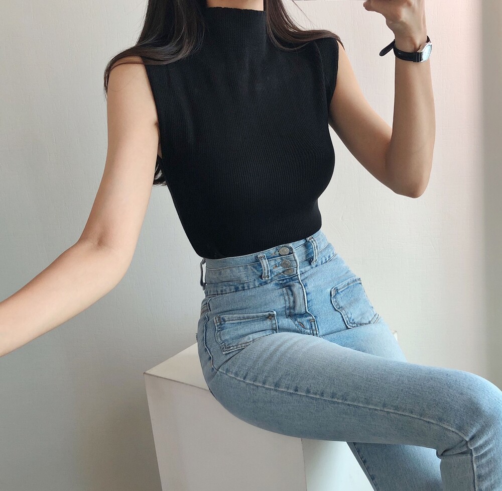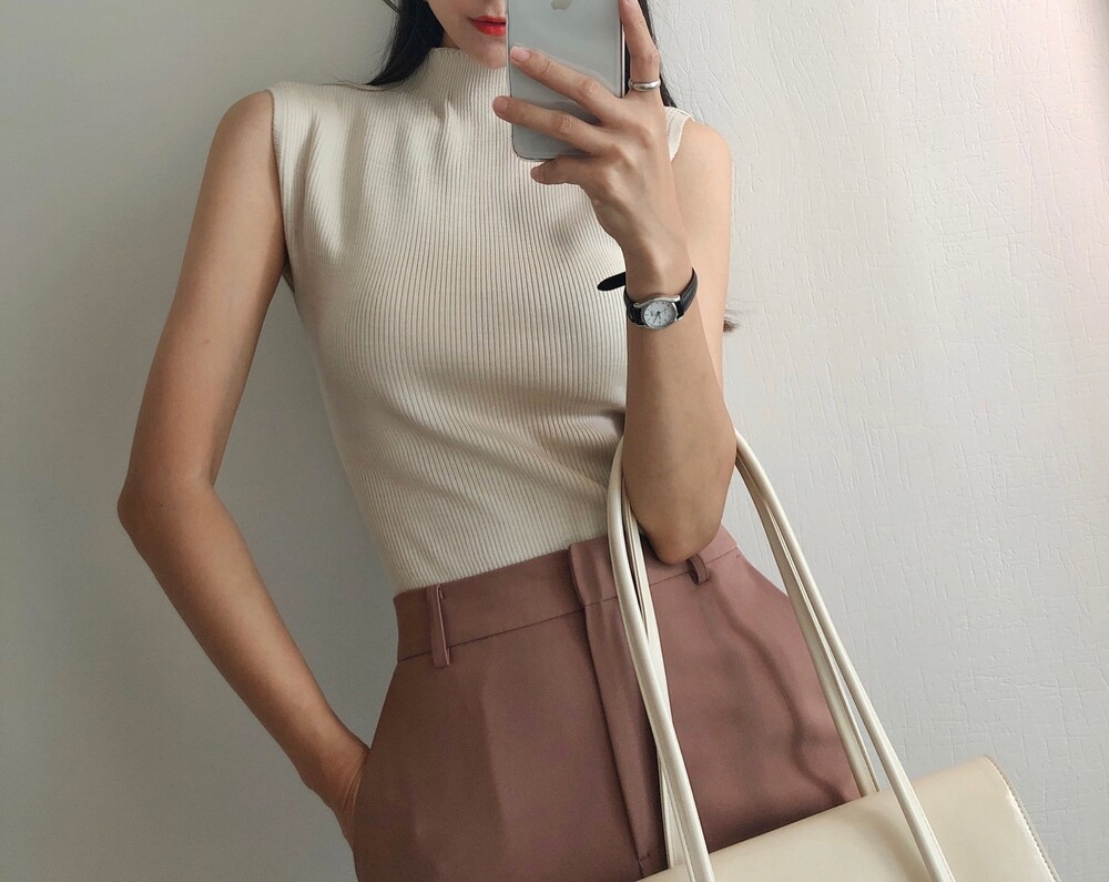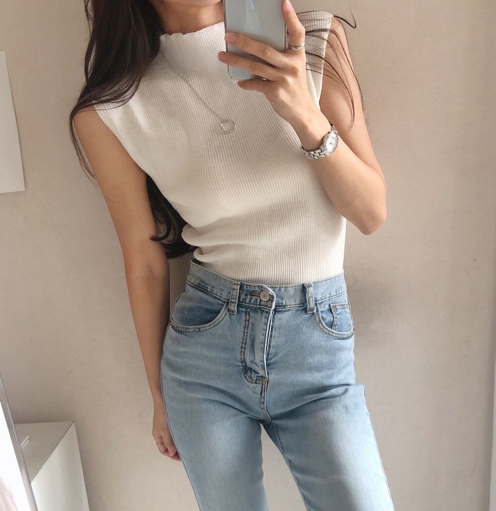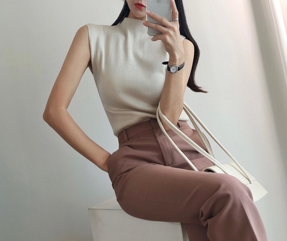 반터틀넥의 민소매 니트예요.