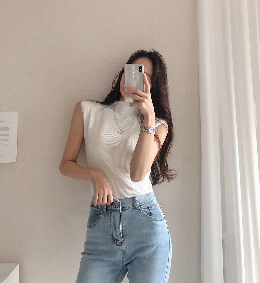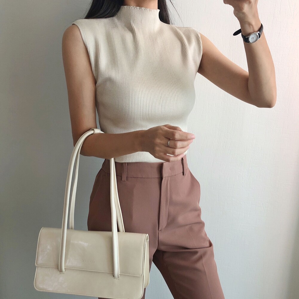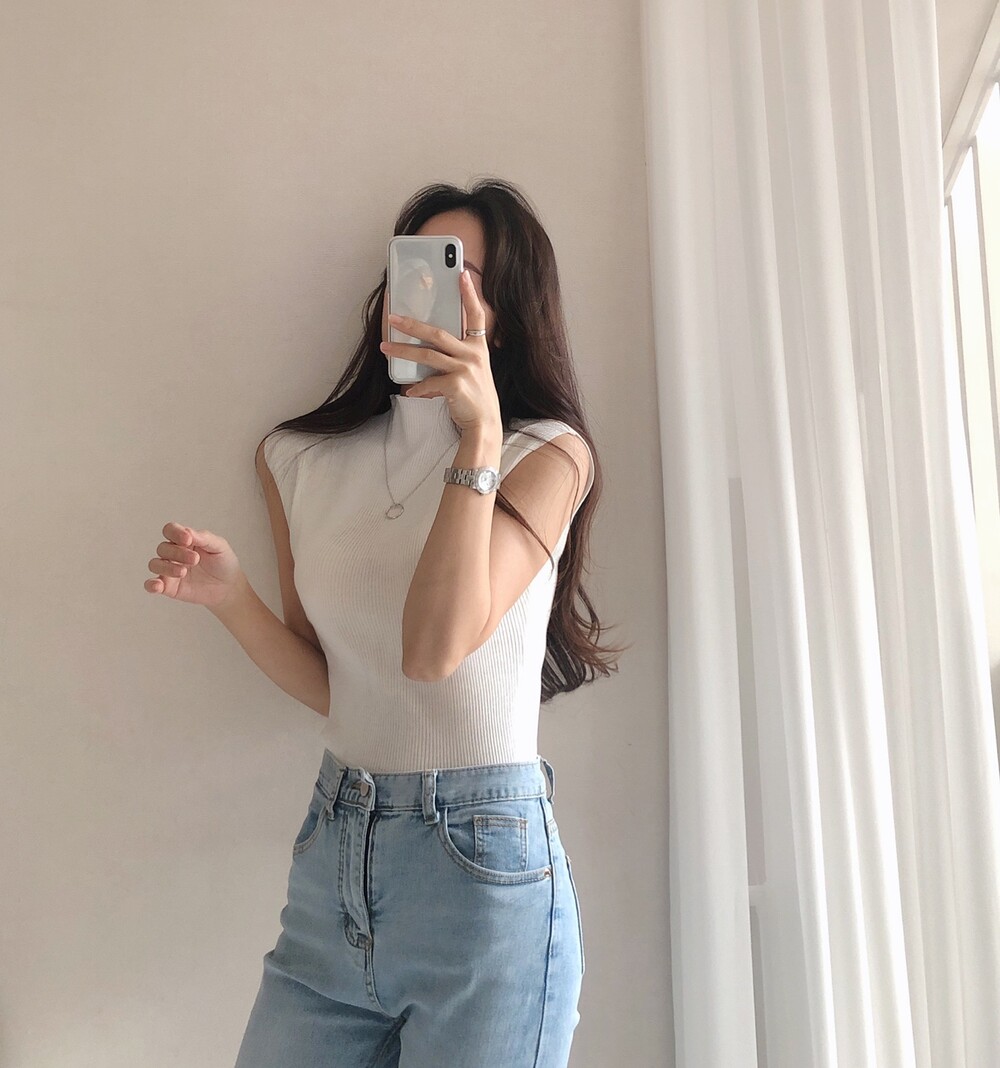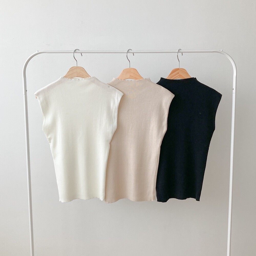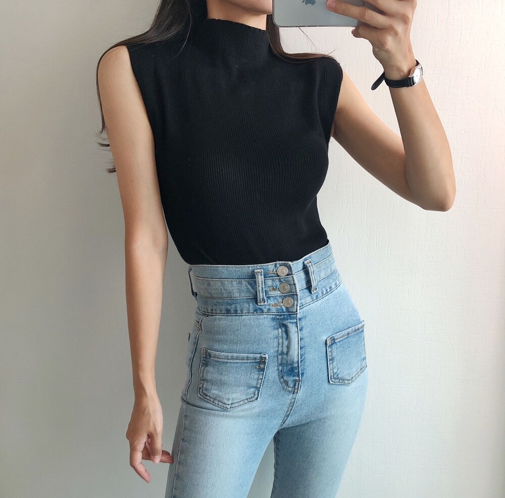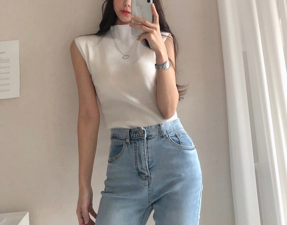 반터틀넥의 민소매 니트예요.