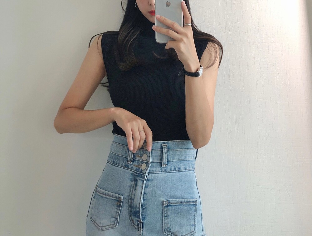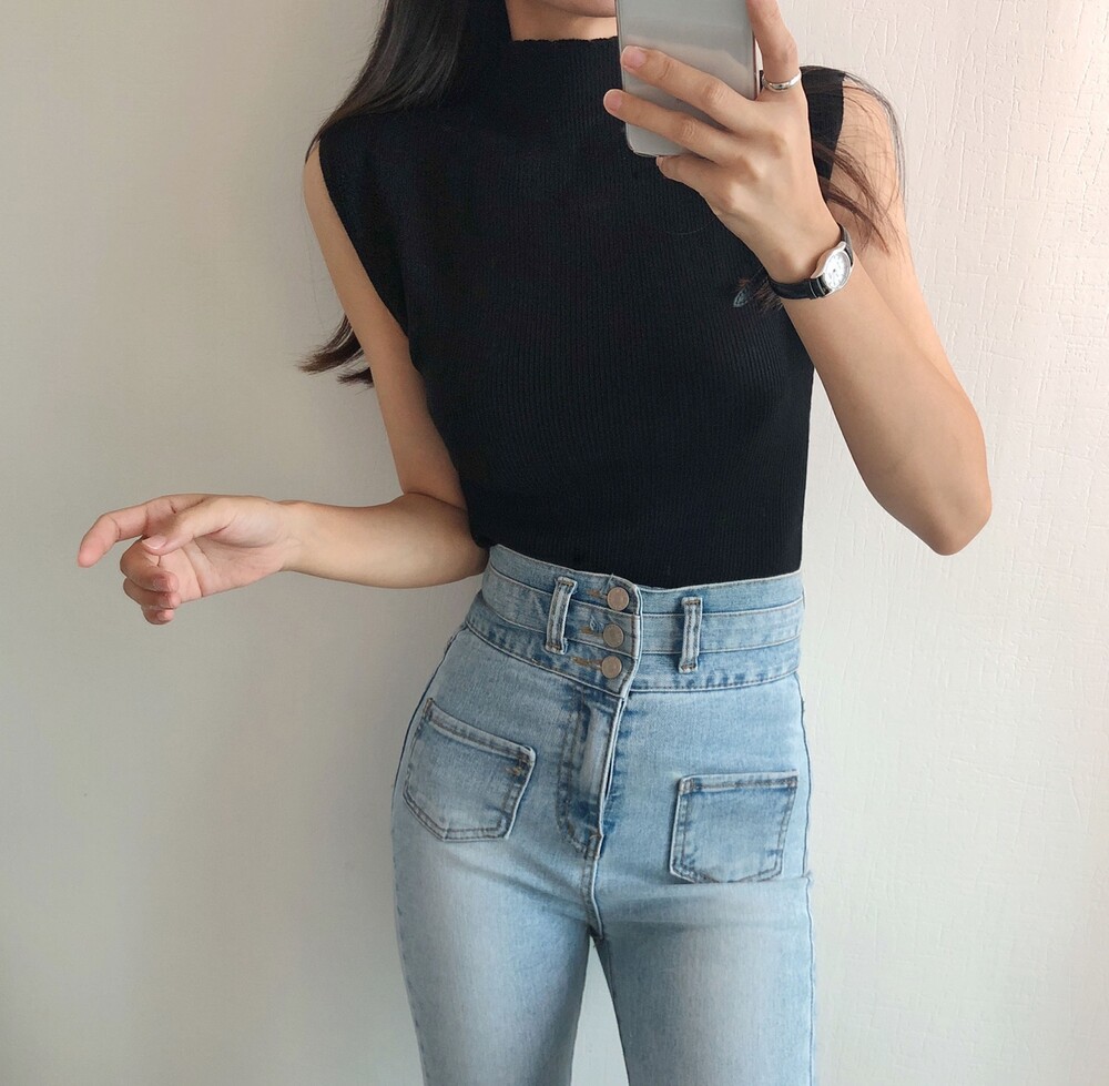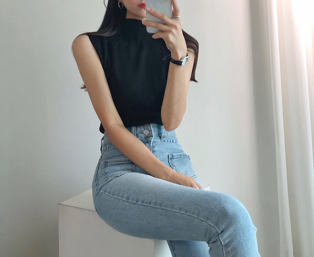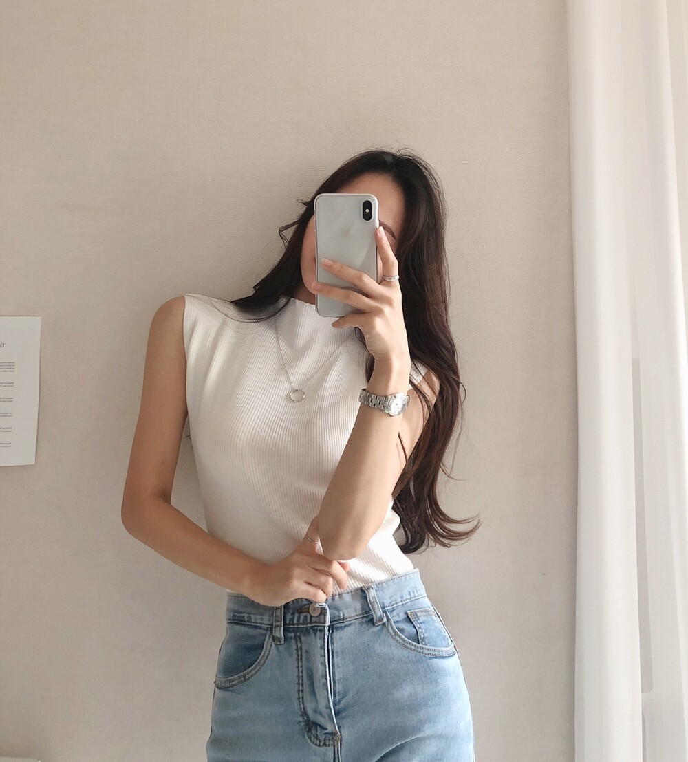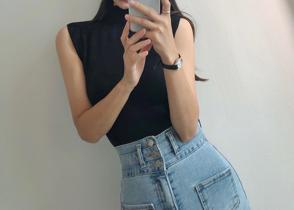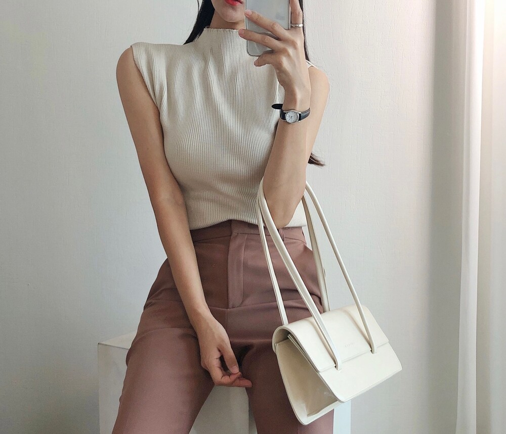반터틀넥의 민소매 니트예요.