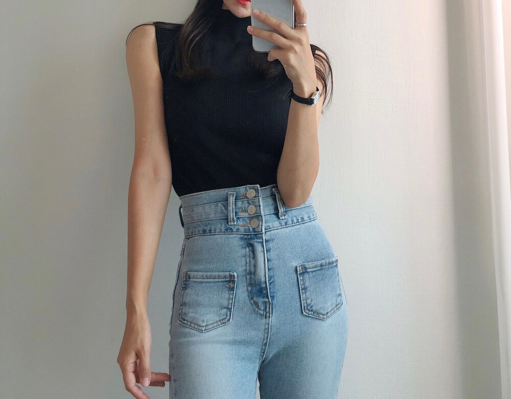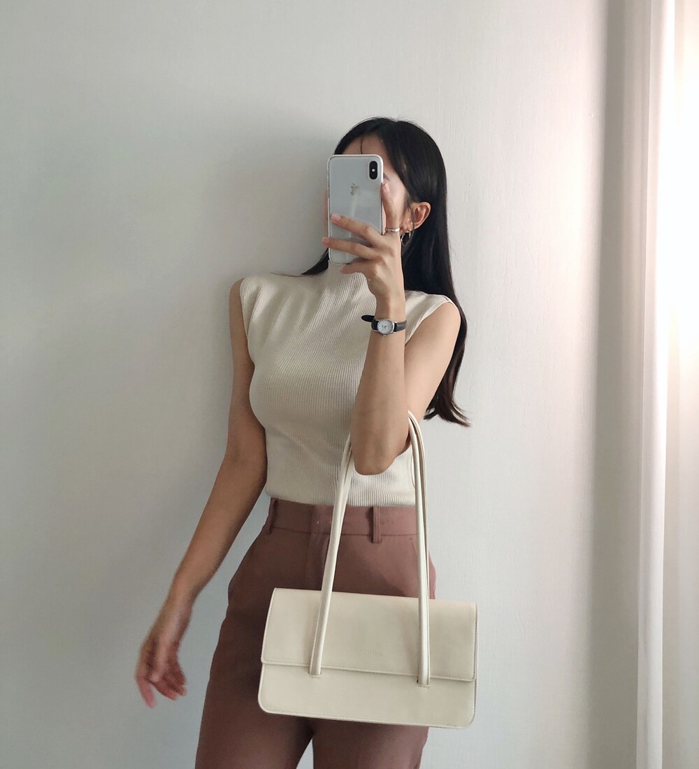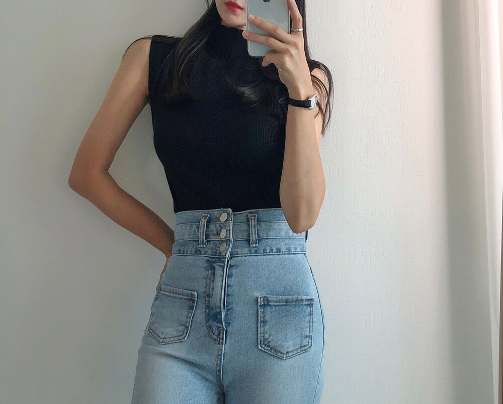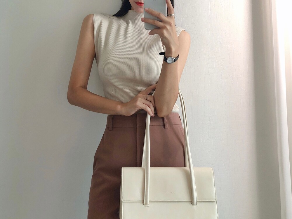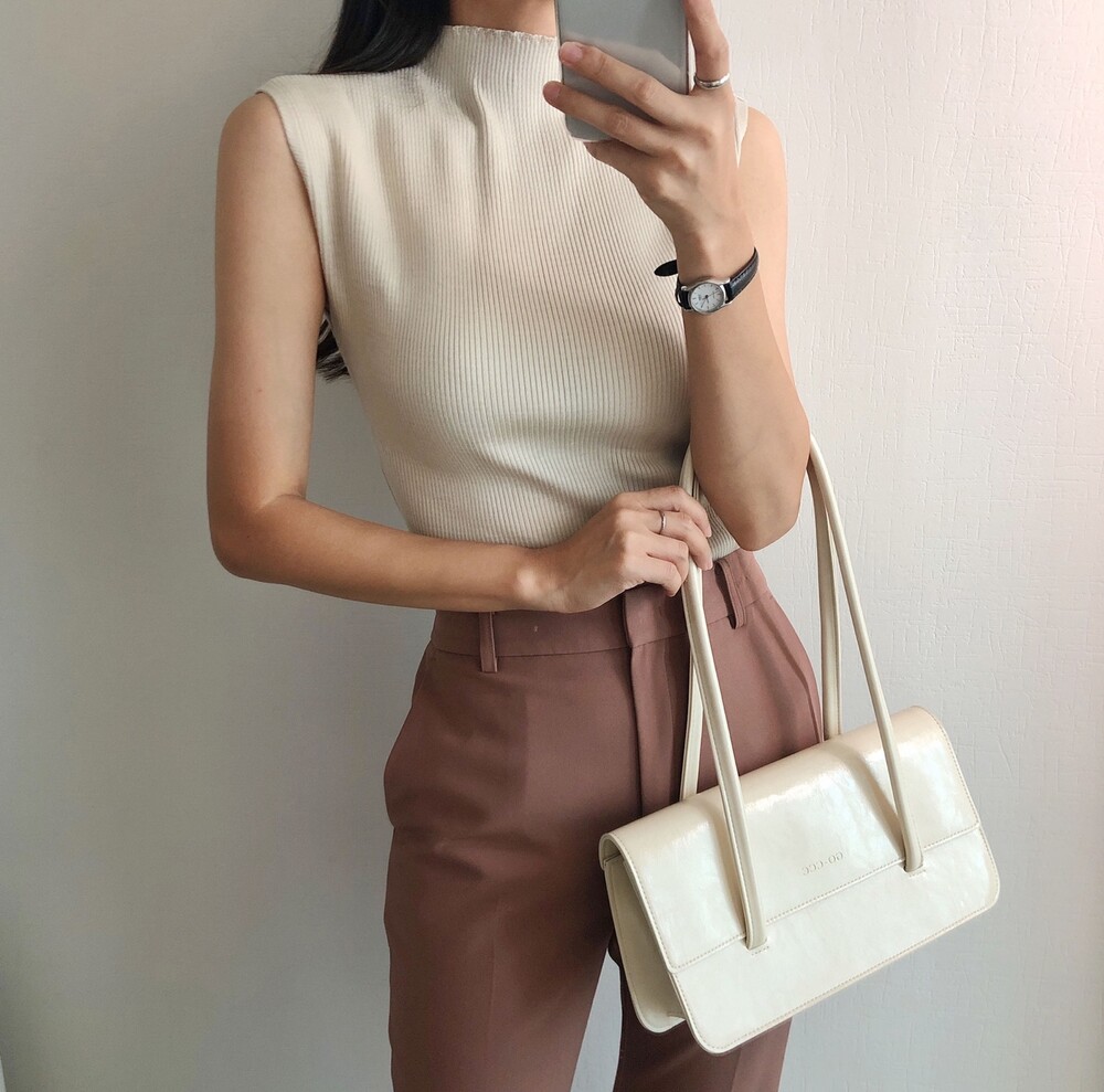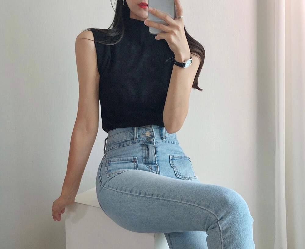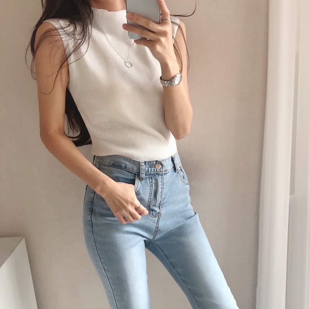 반터틀넥의 민소매 니트예요.