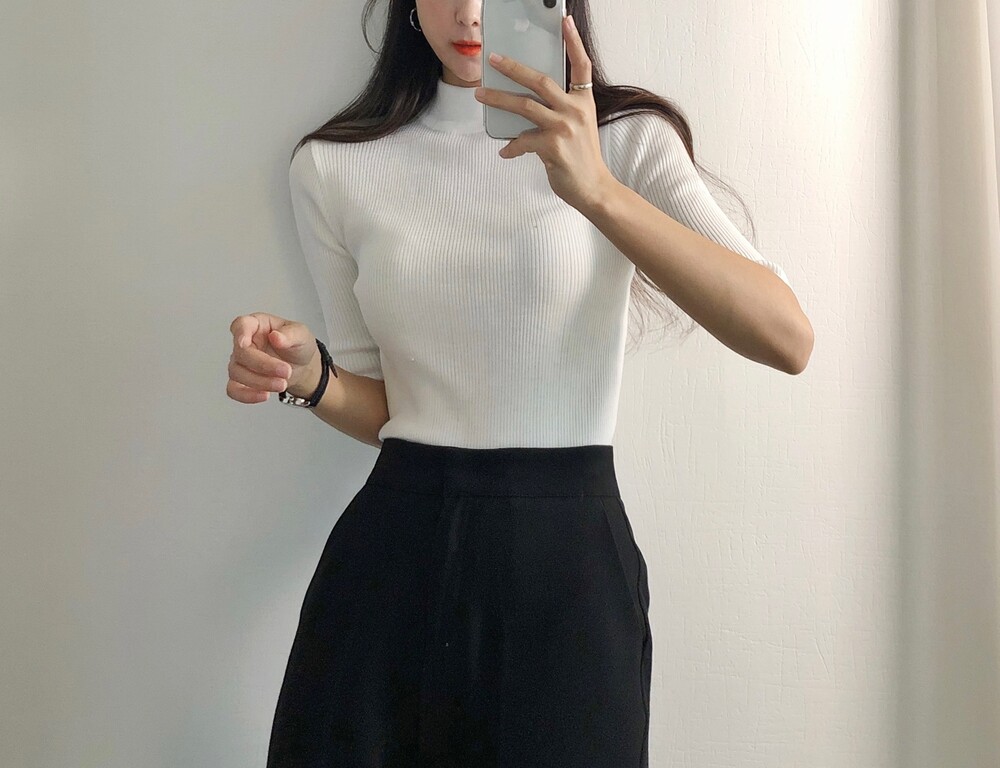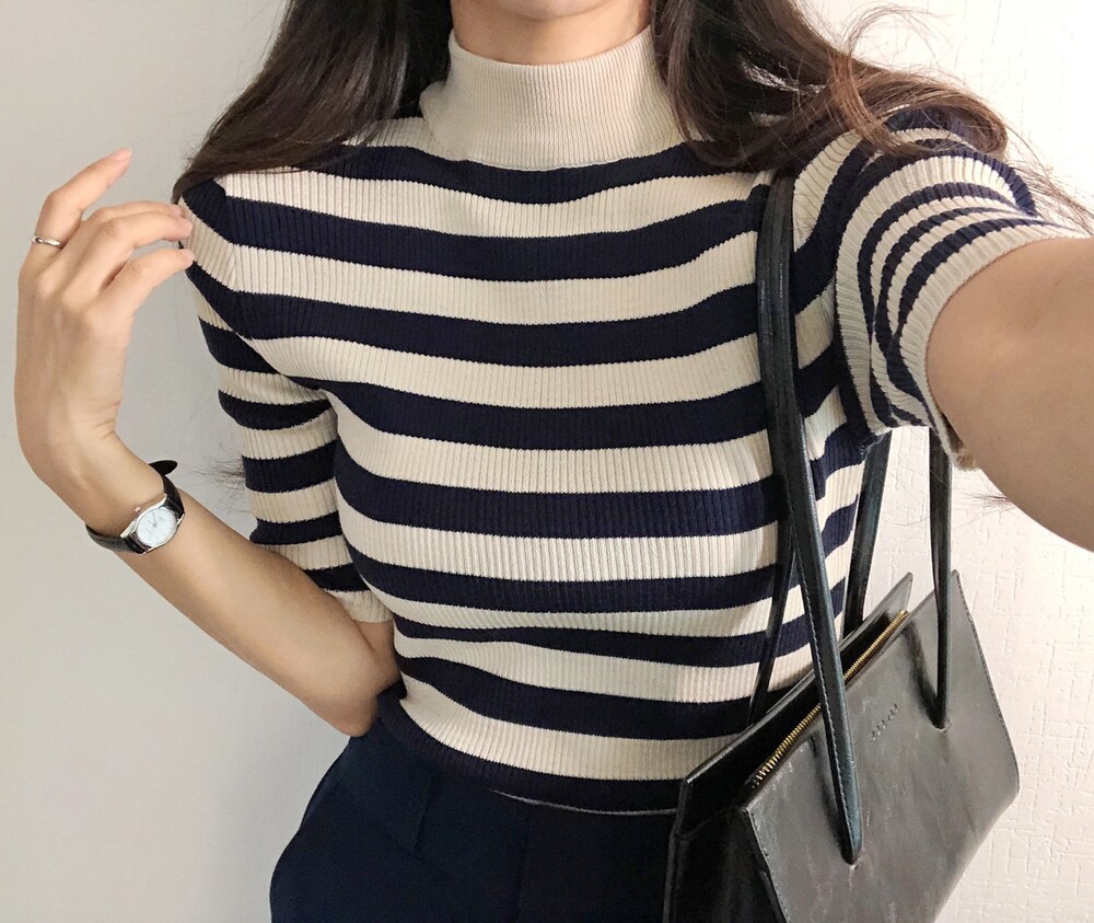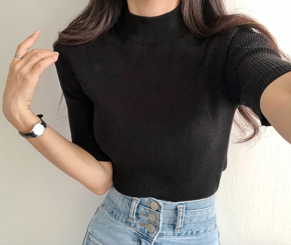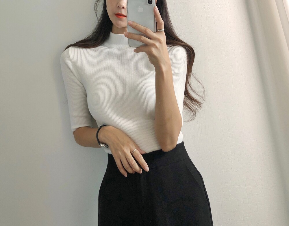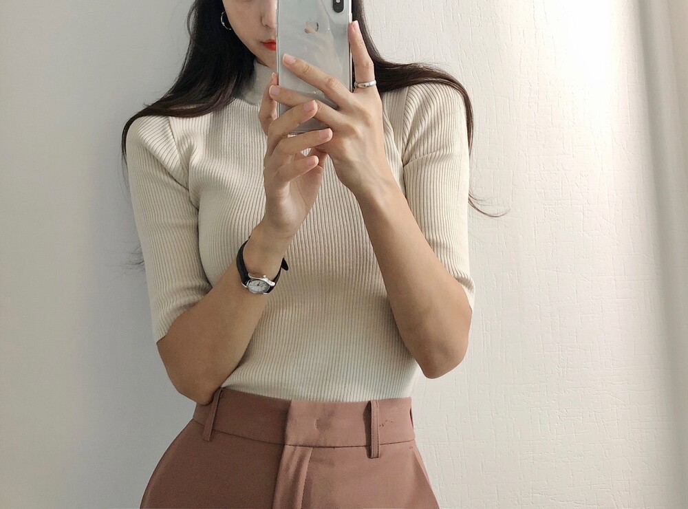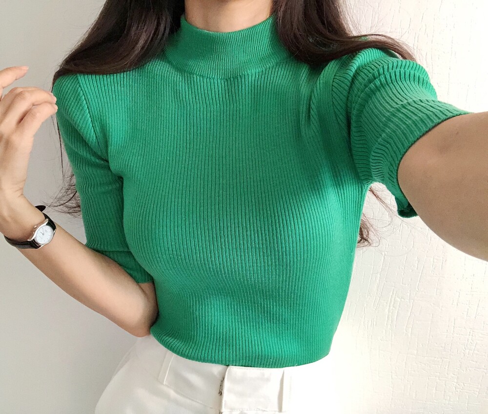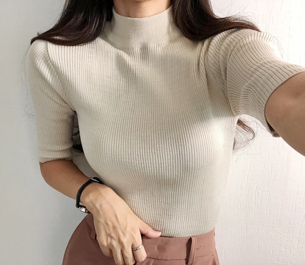 베이직한 반폴라 5부소매니트예요.