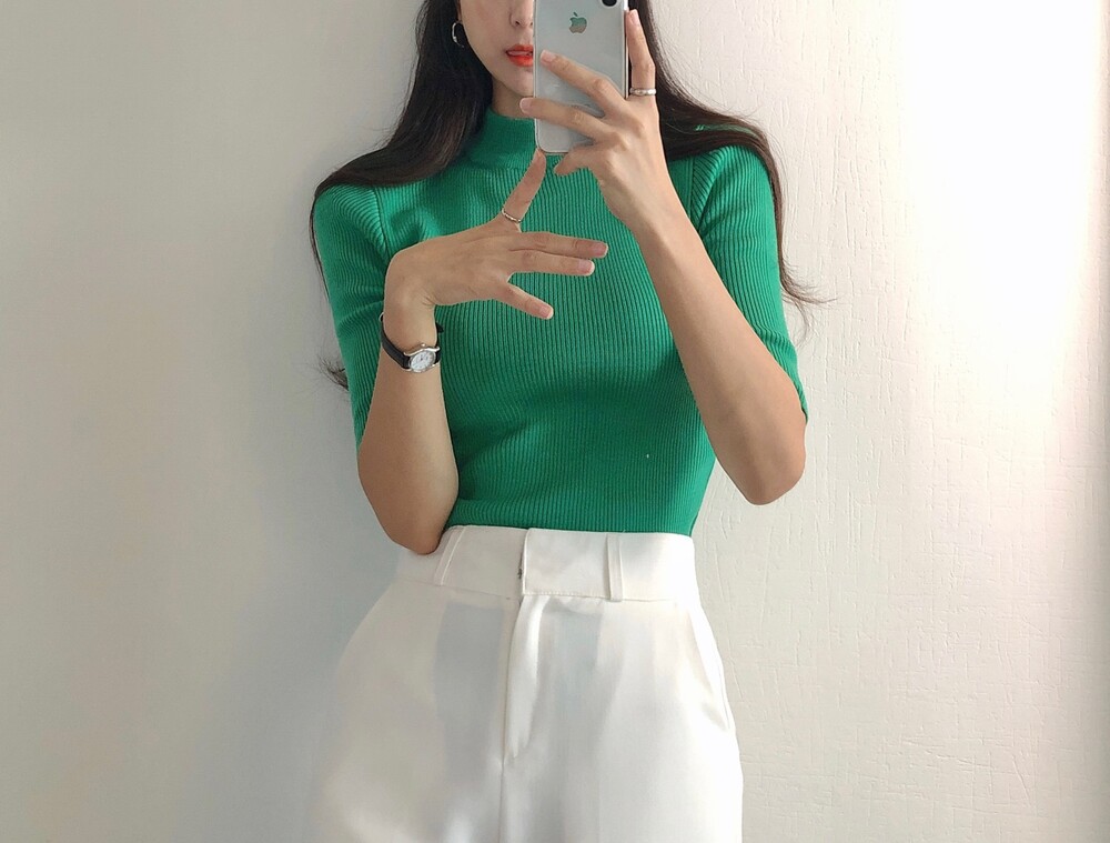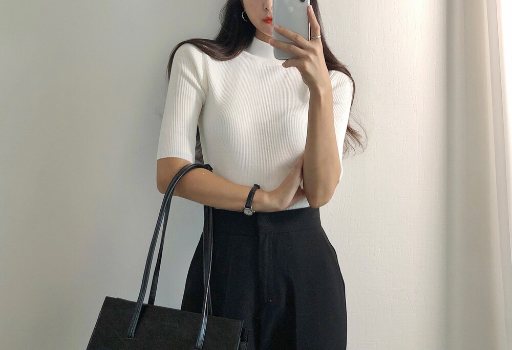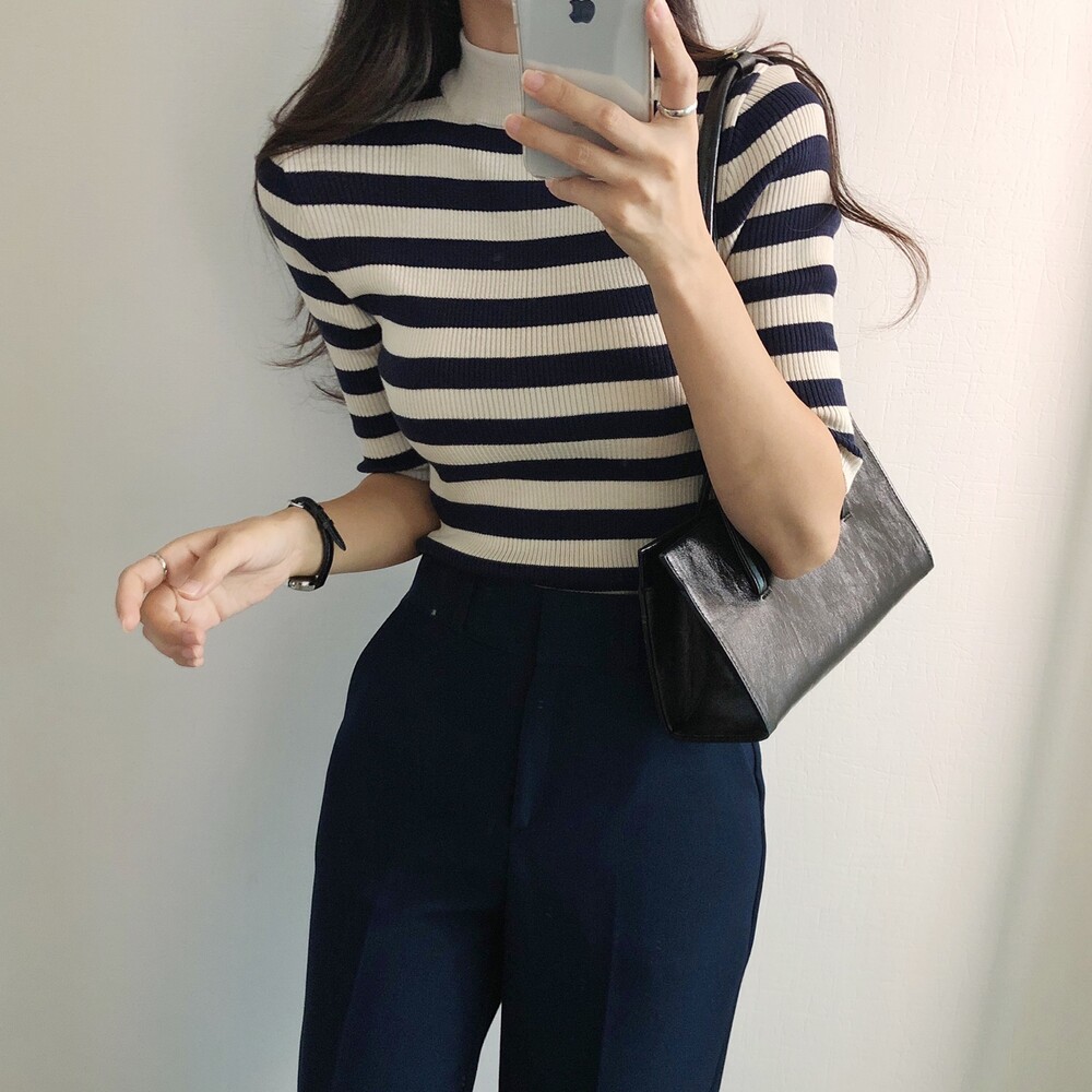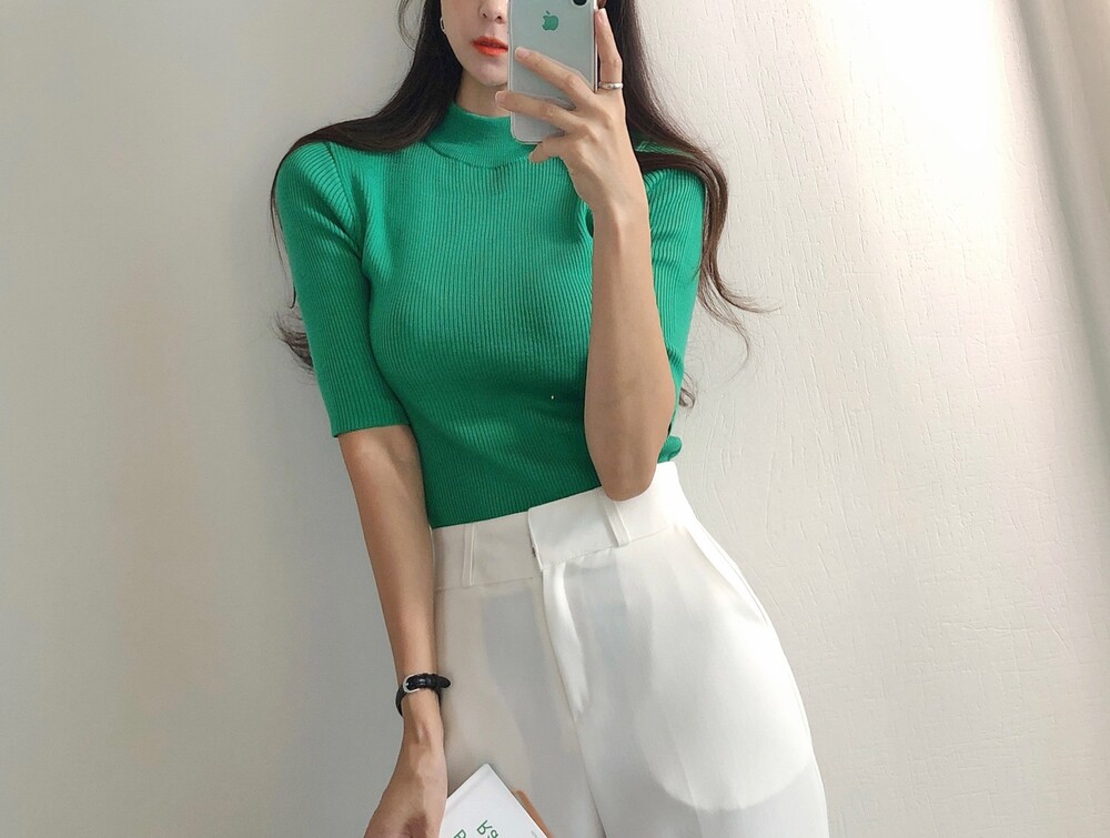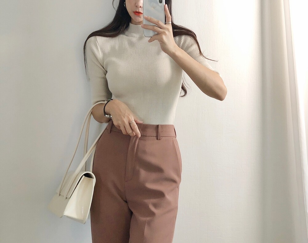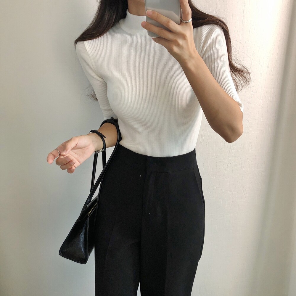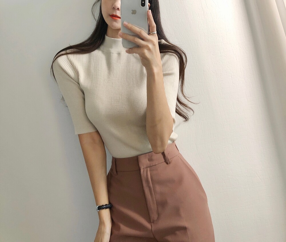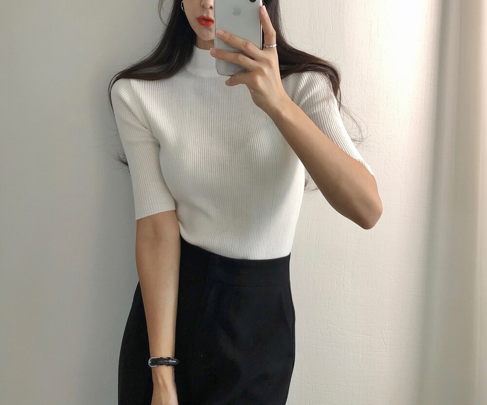 베이직한 반폴라 5부소매니트예요.