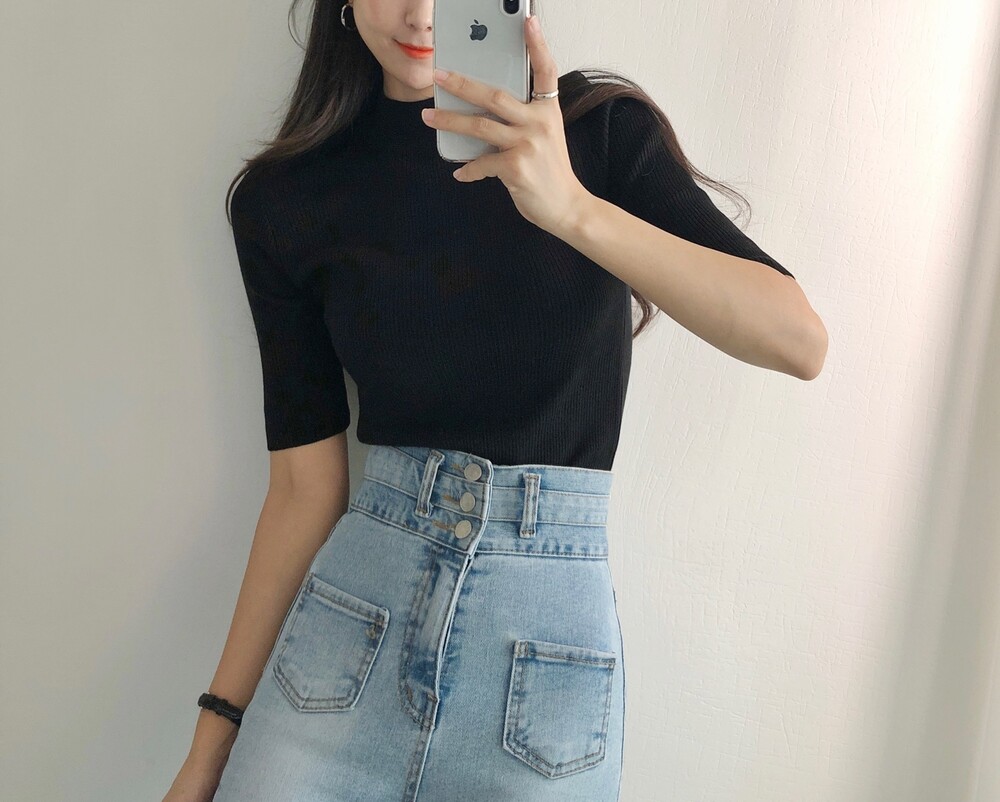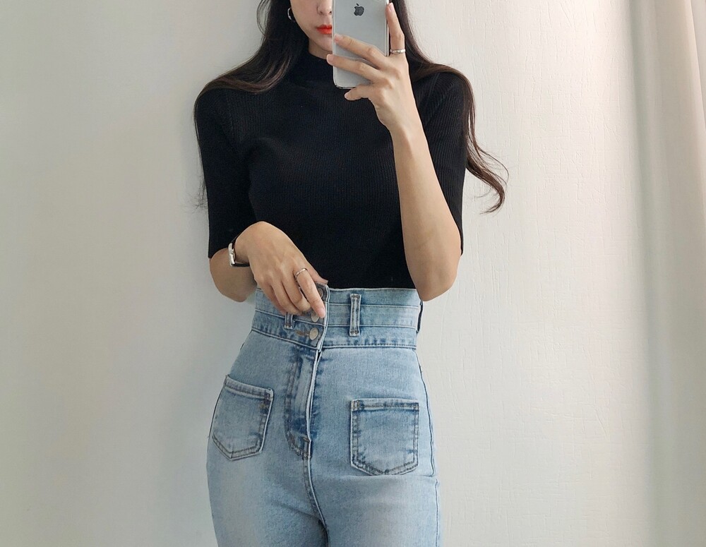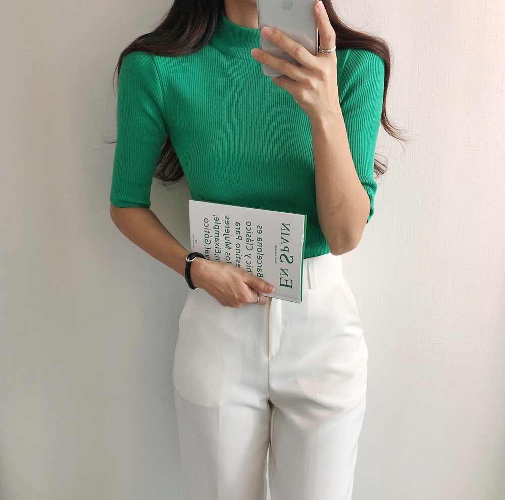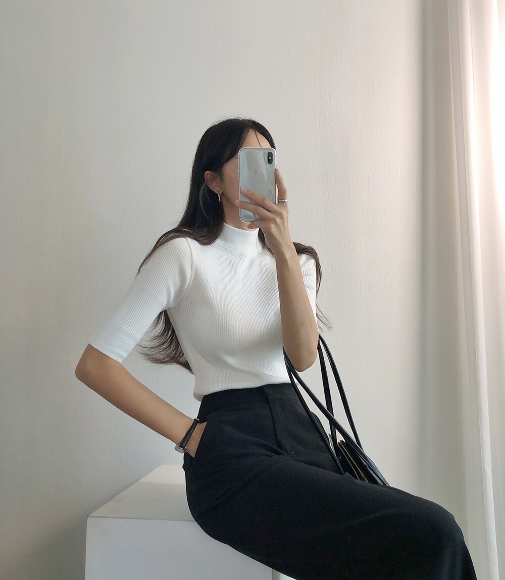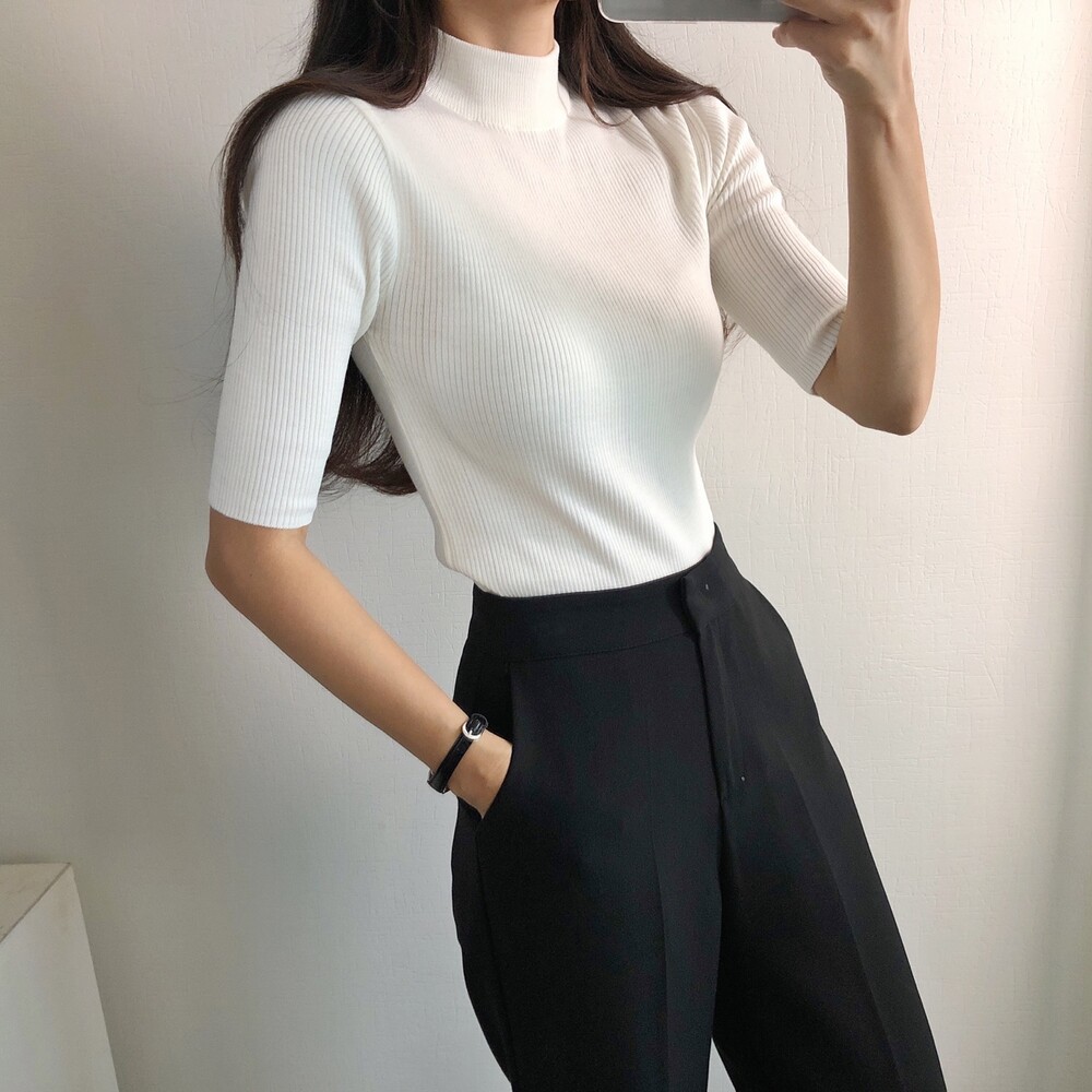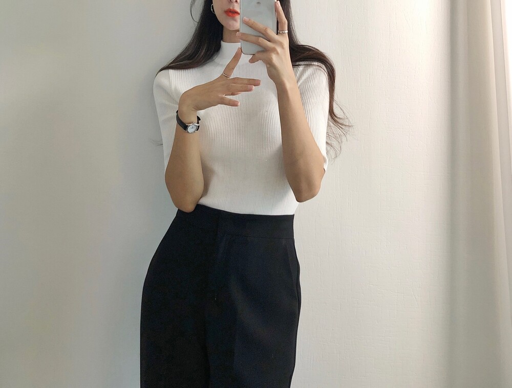 베이직한 반폴라 5부소매니트예요.