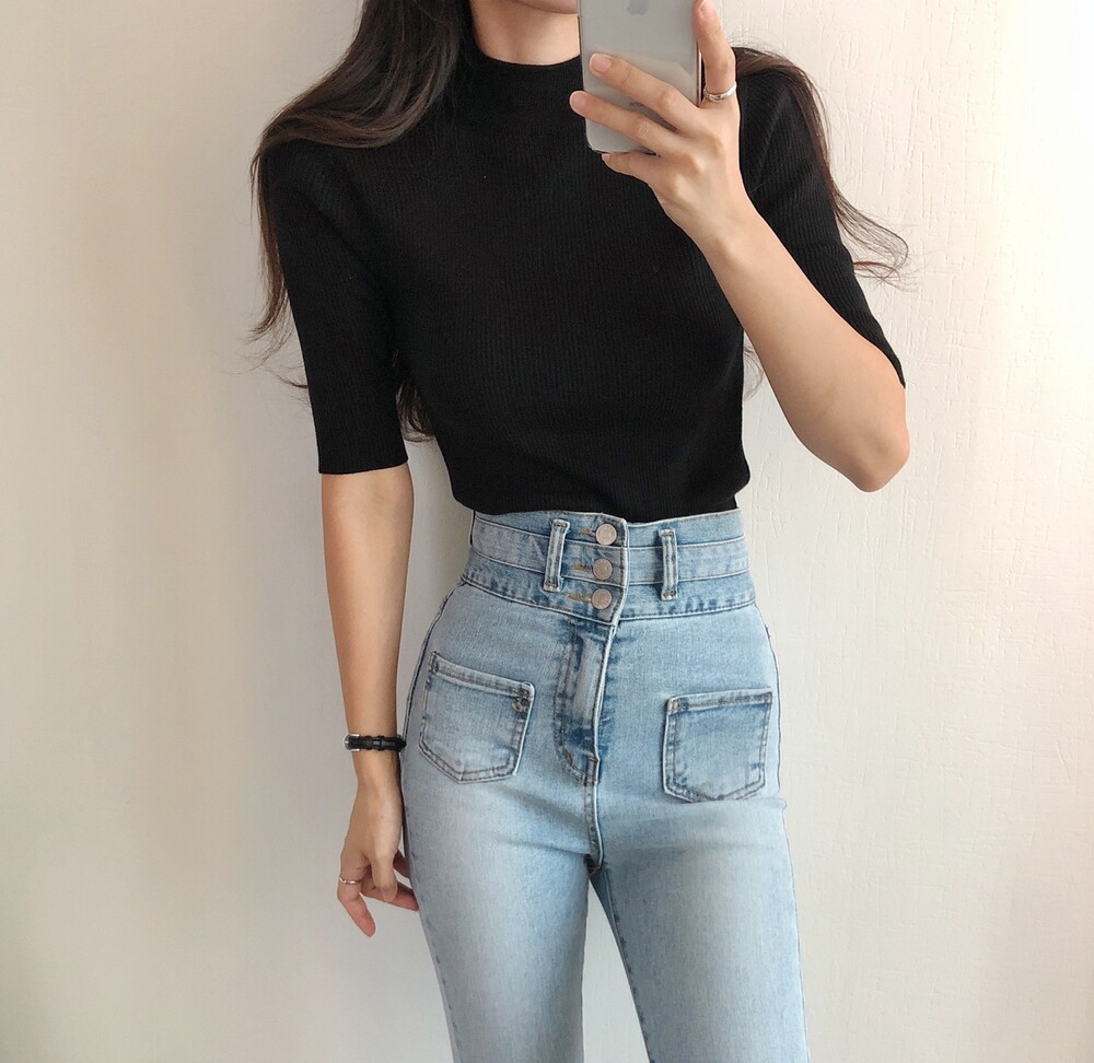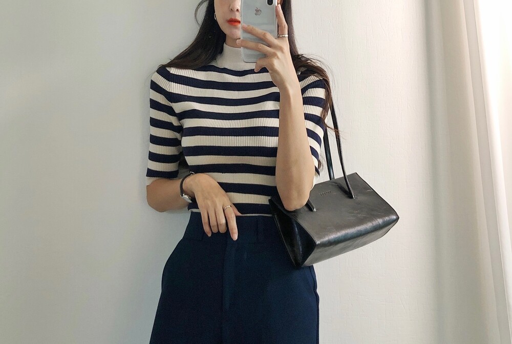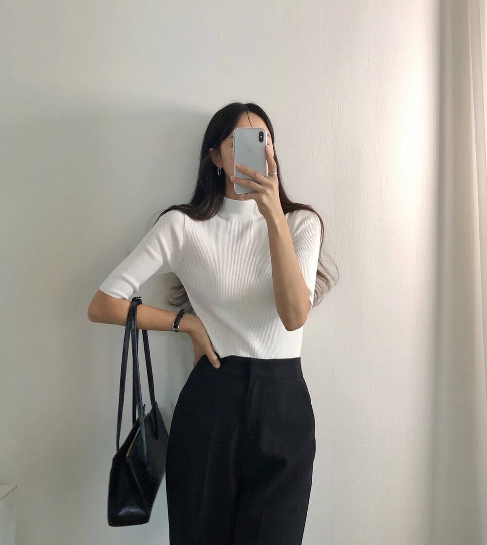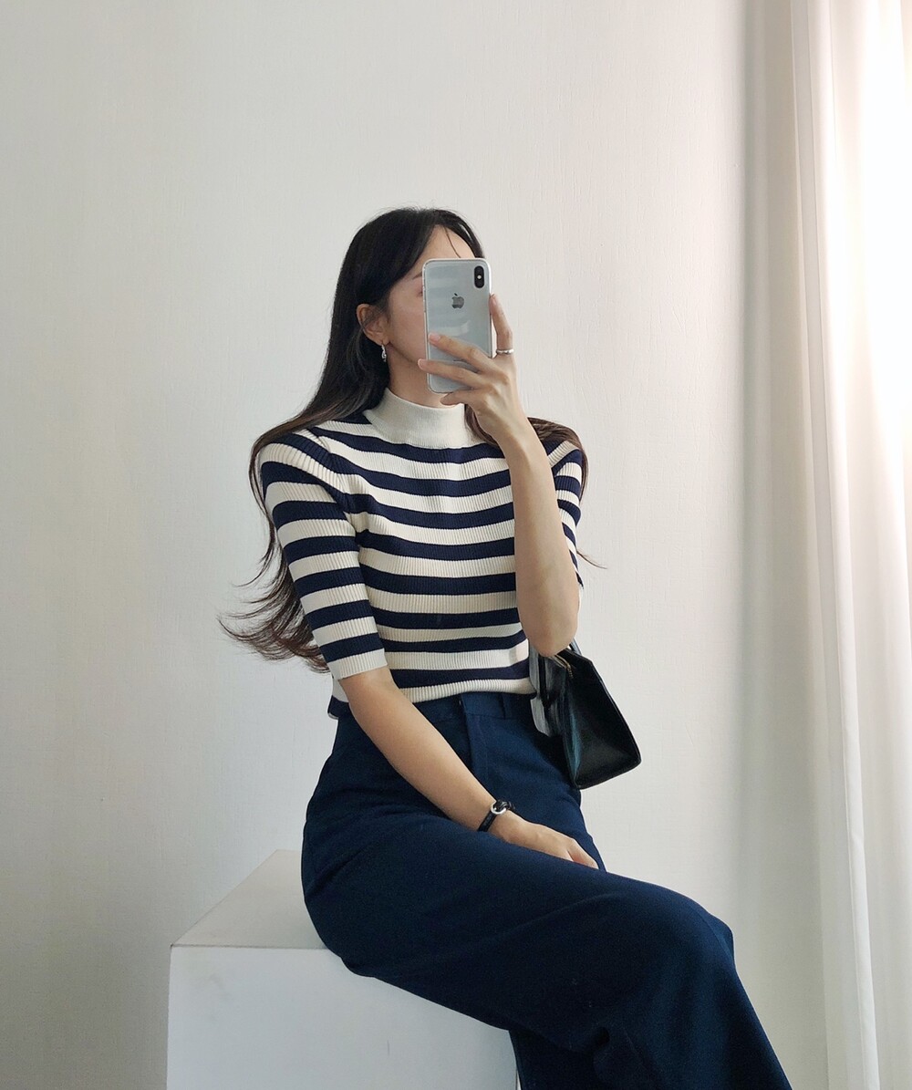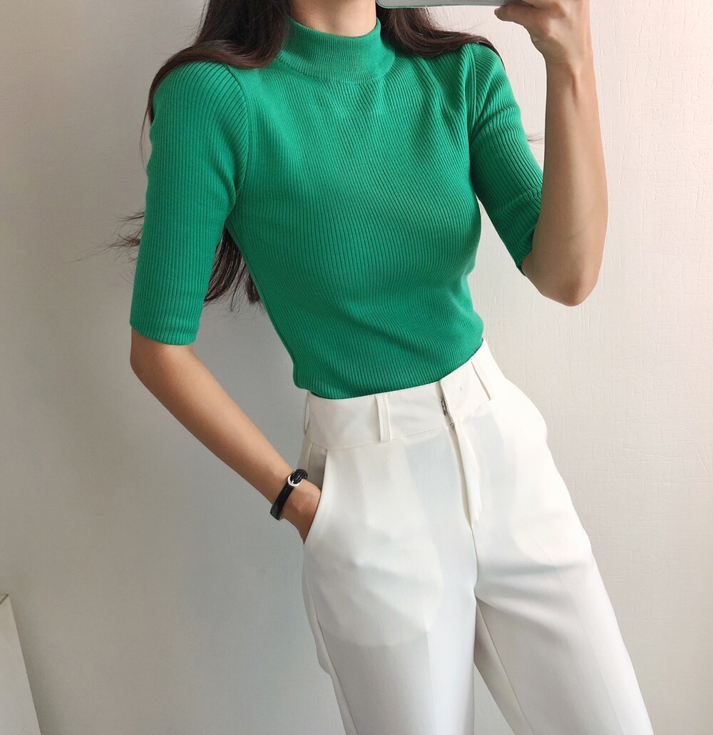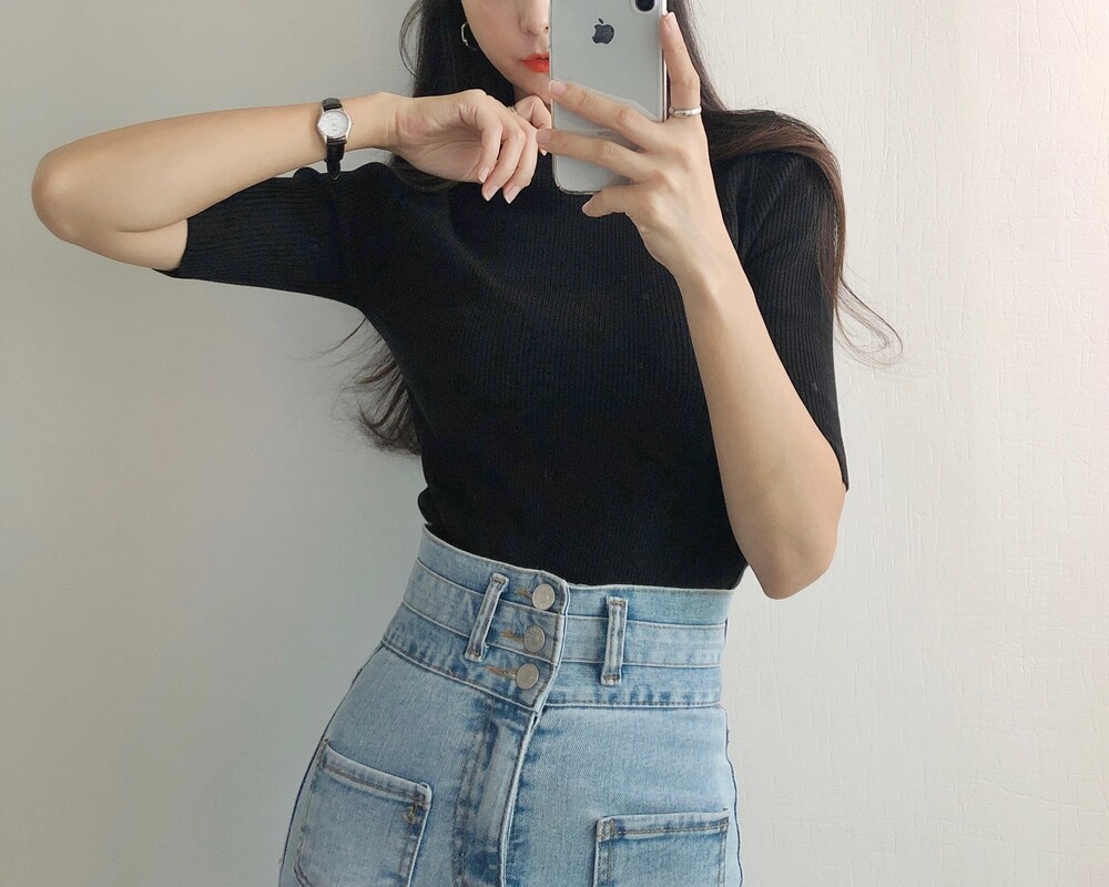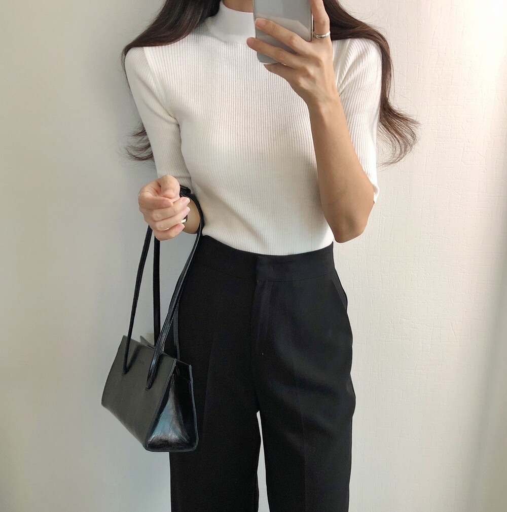 베이직한 반폴라 5부소매니트예요.