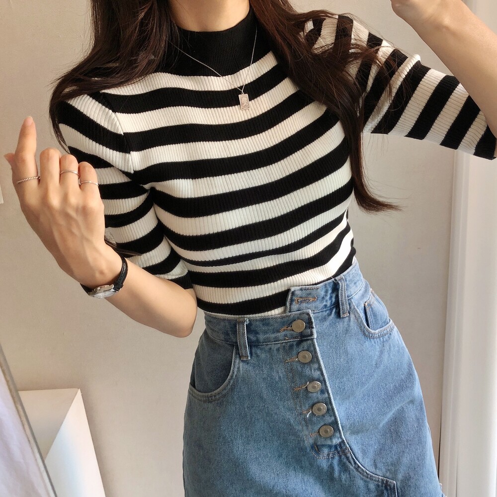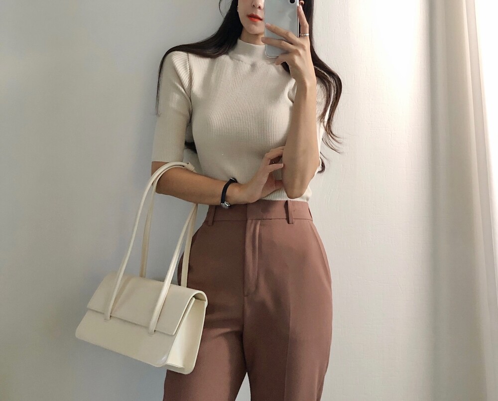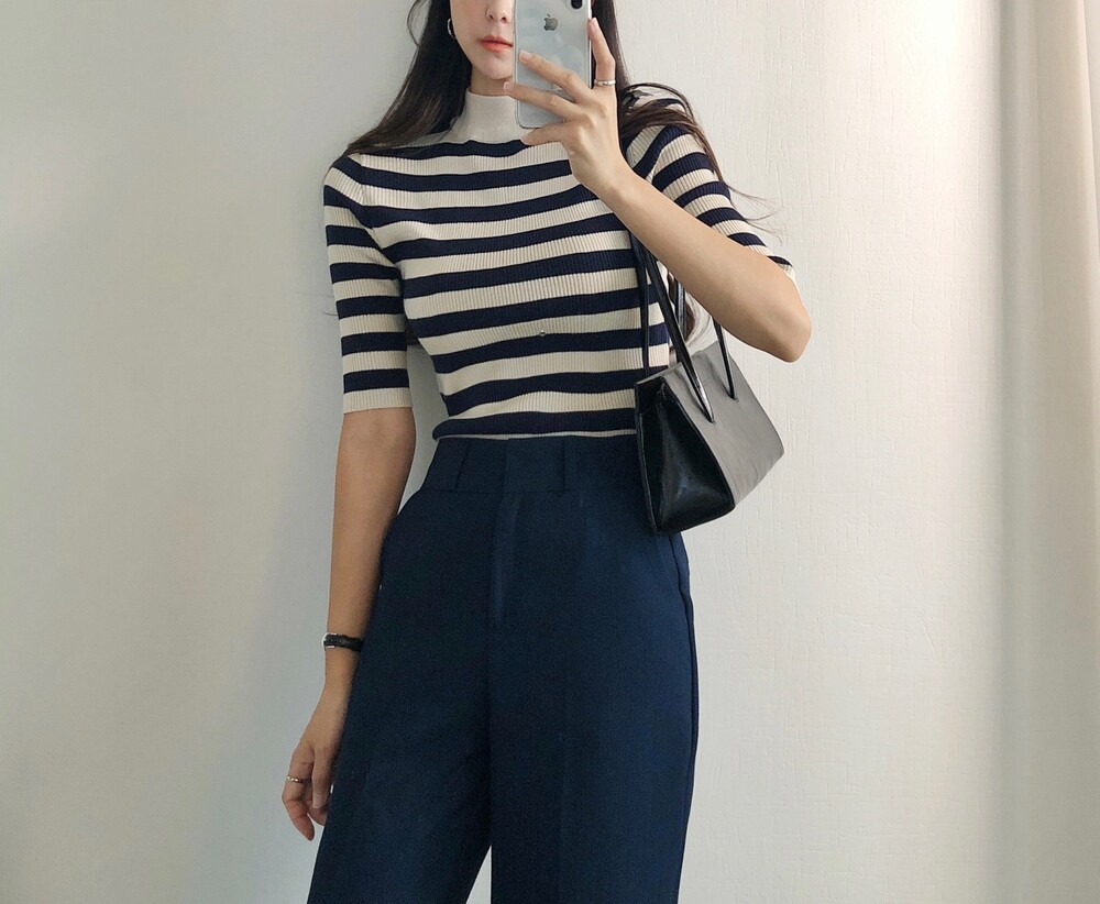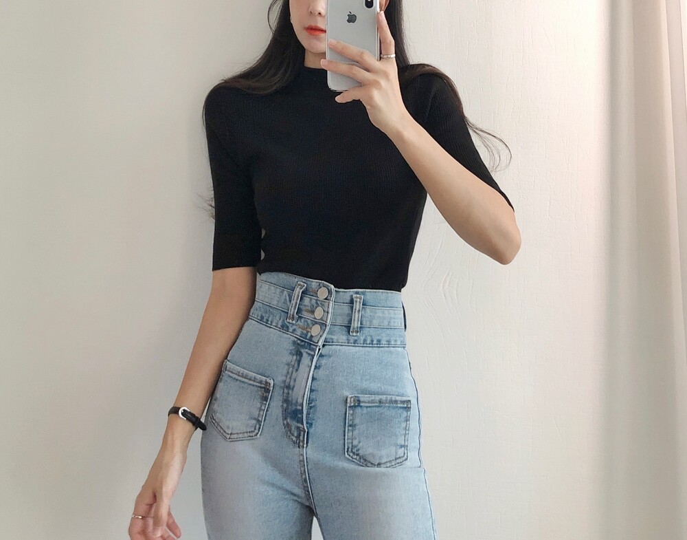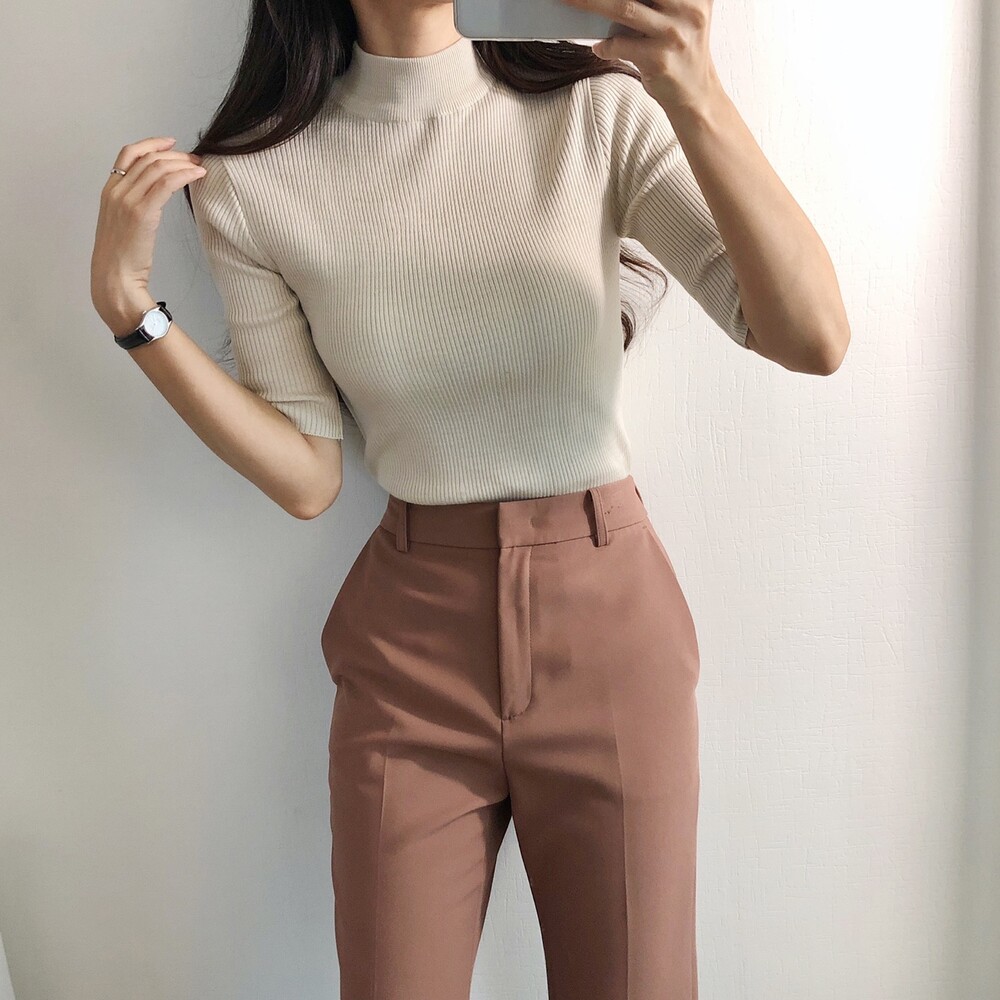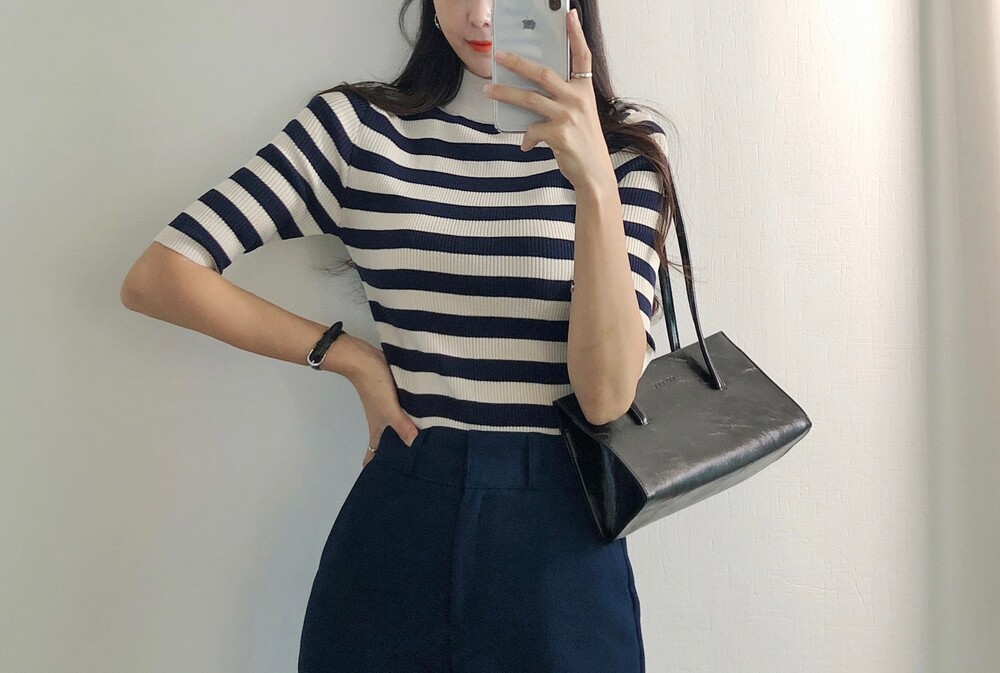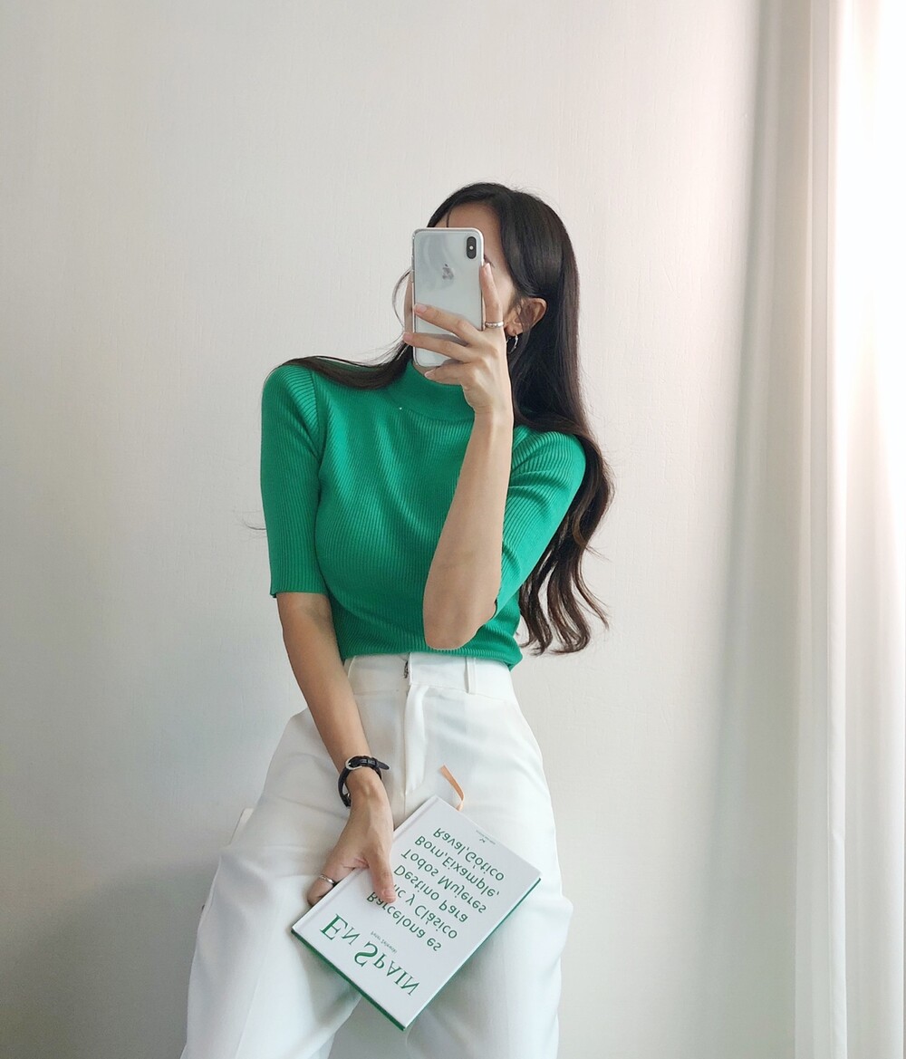 베이직한 반폴라 5부소매니트예요.