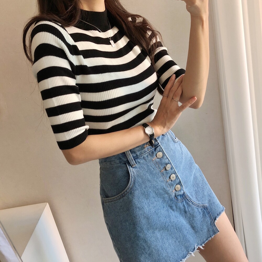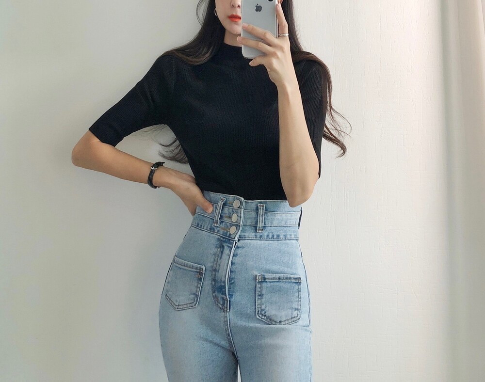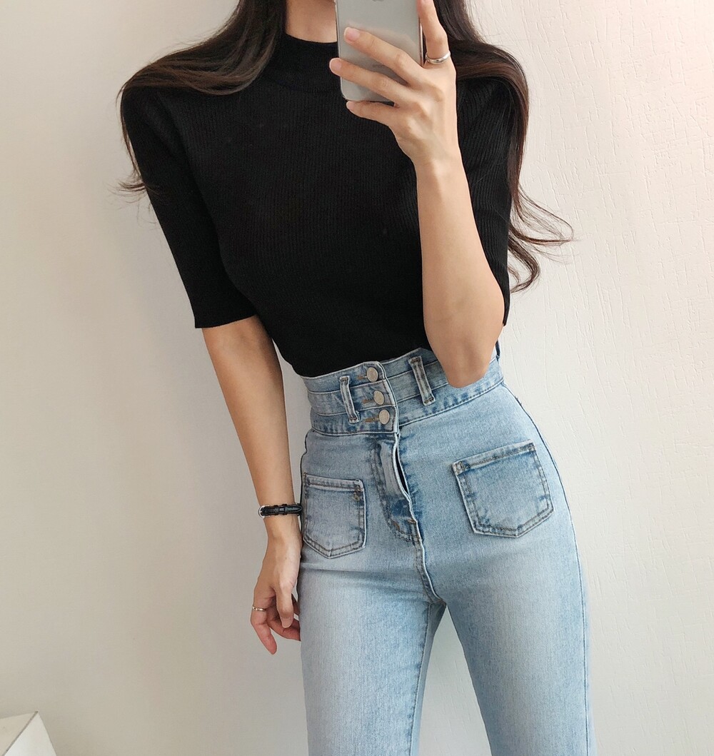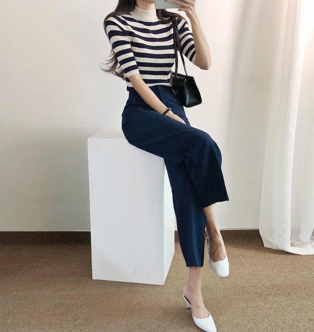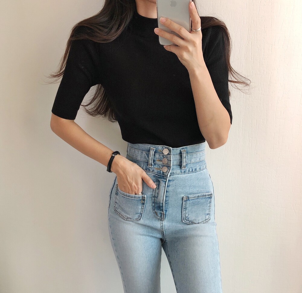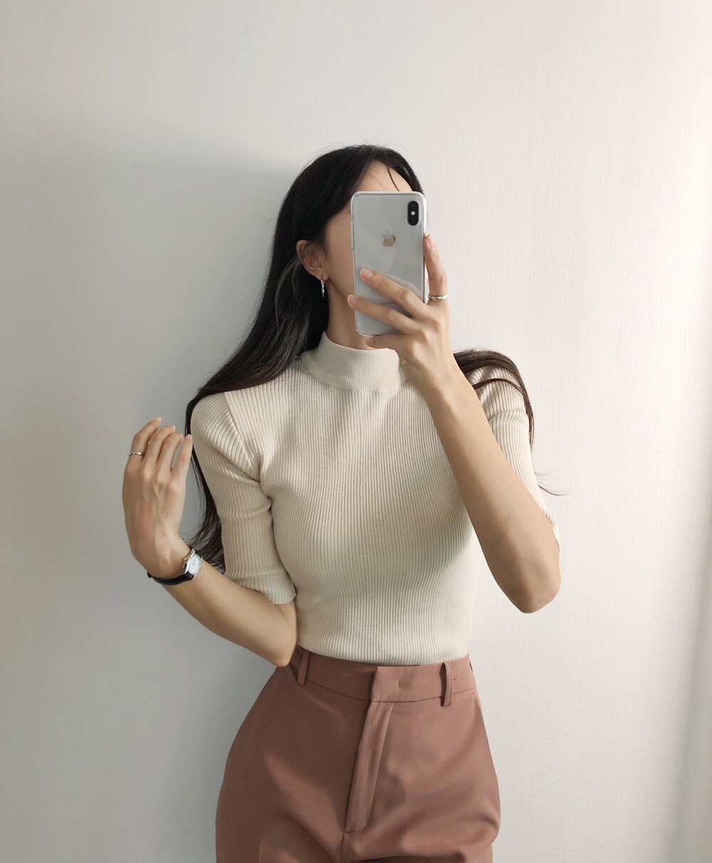 베이직한 반폴라 5부소매니트예요.