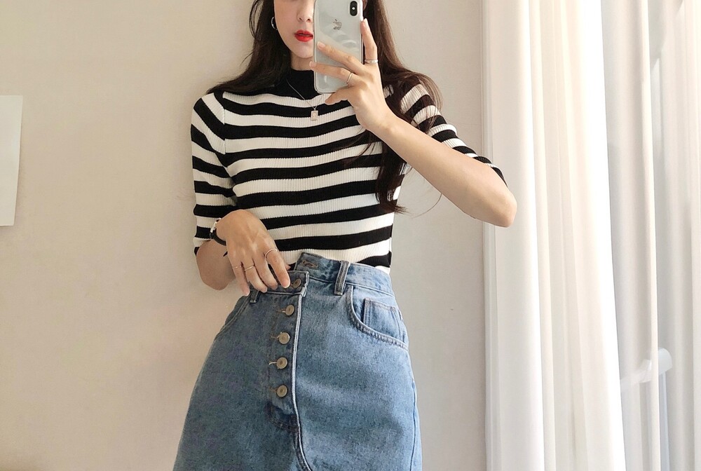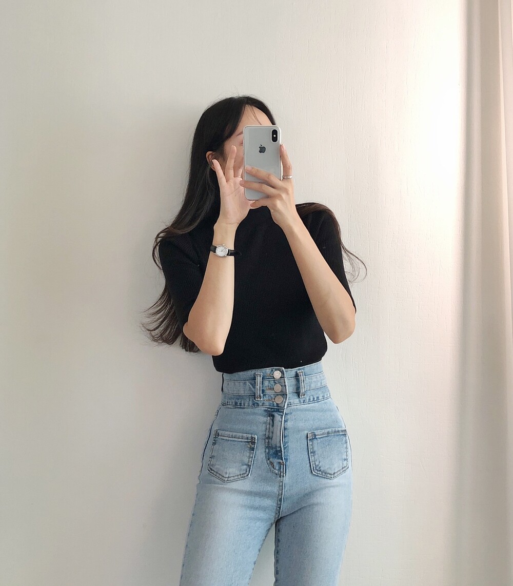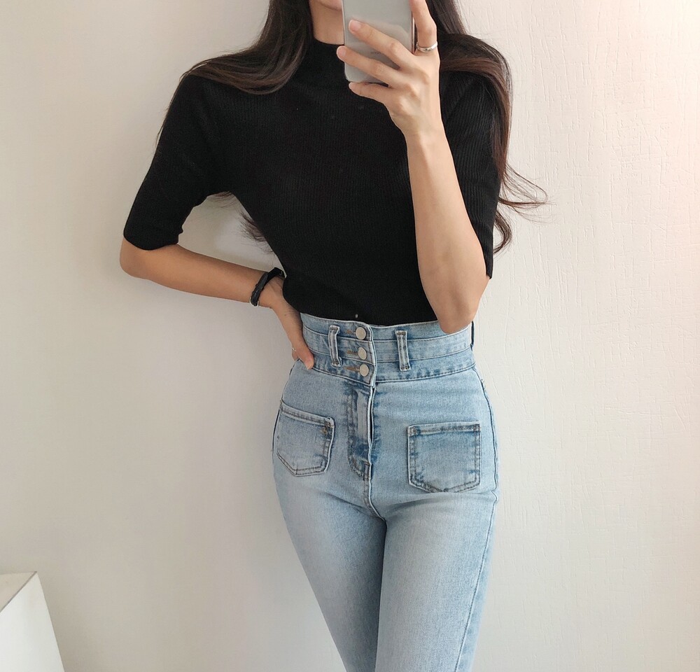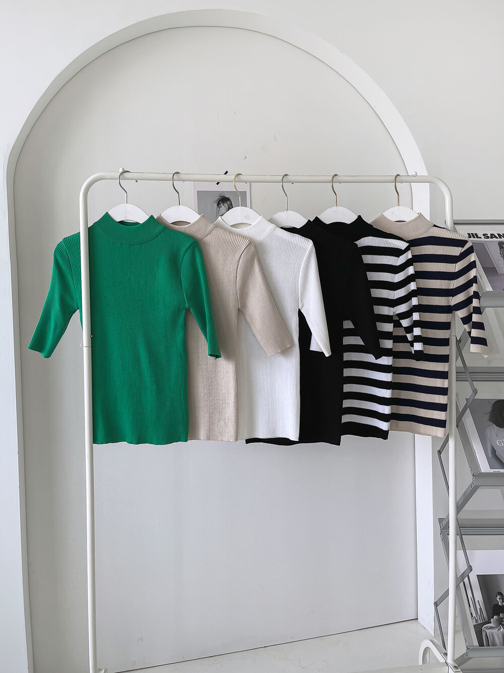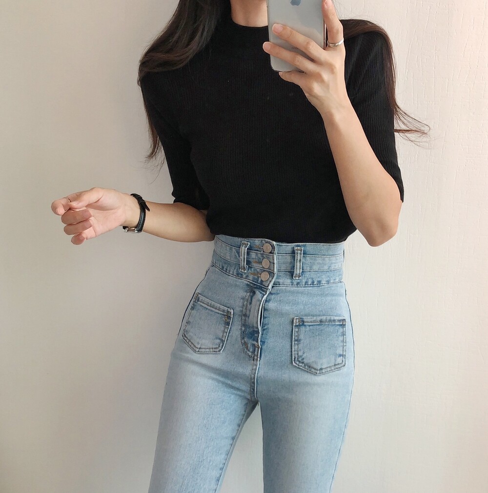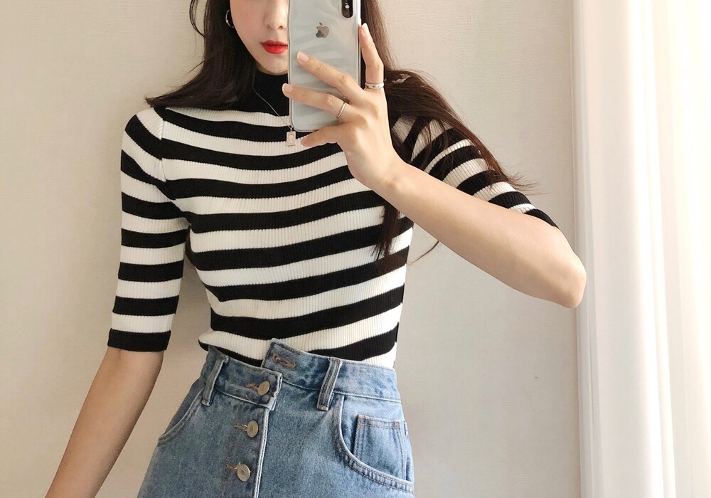 베이직한 반폴라 5부소매니트예요.