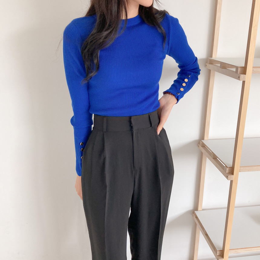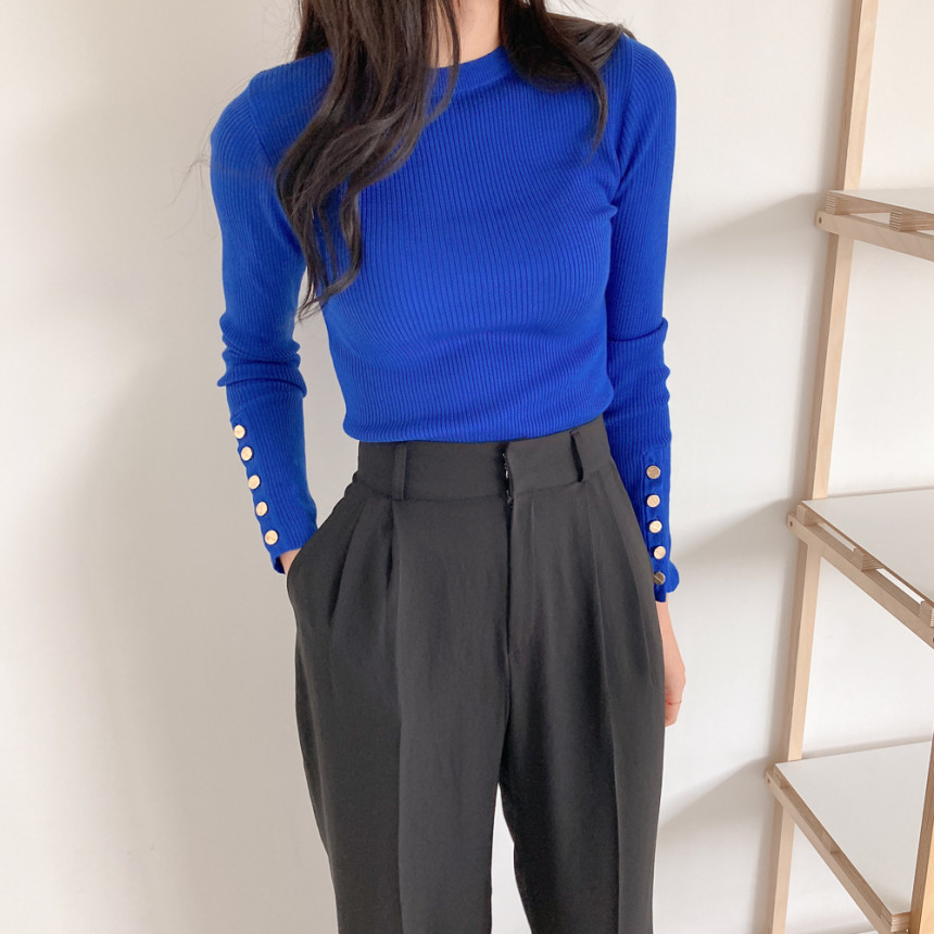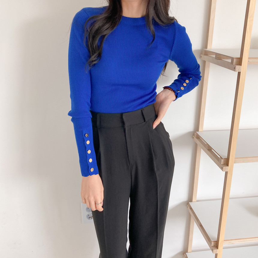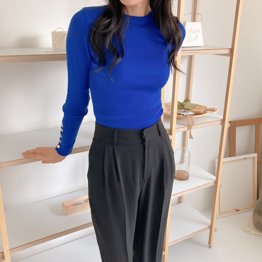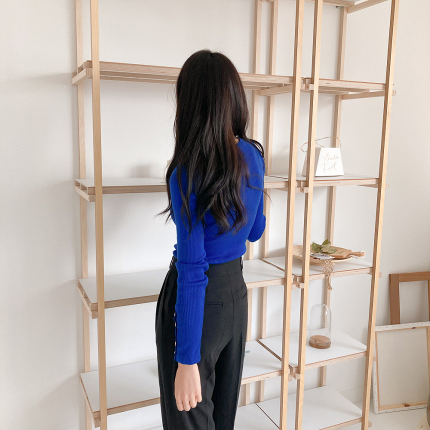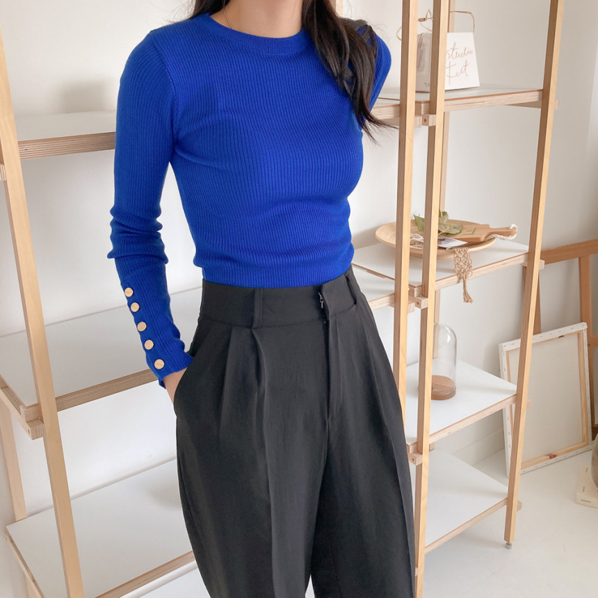 고급스럽고 시크한 라운드넥 긴팔 골지 니트예요.