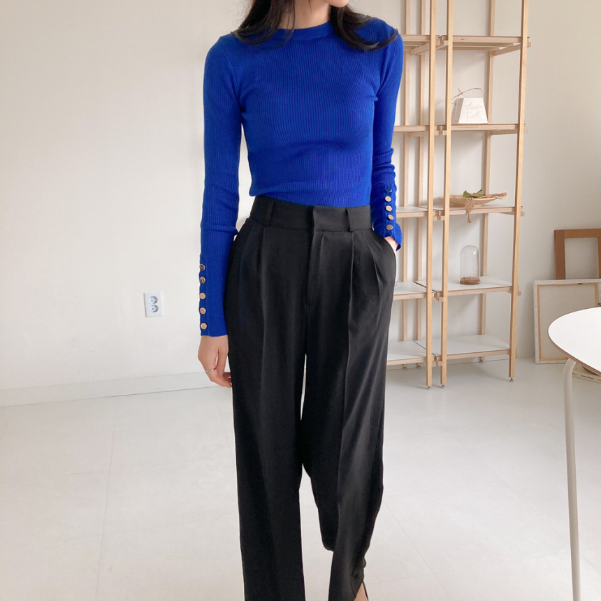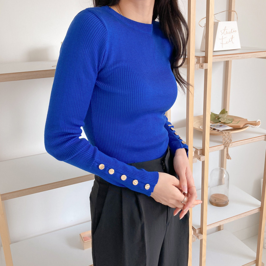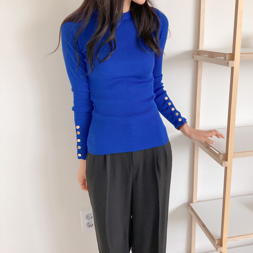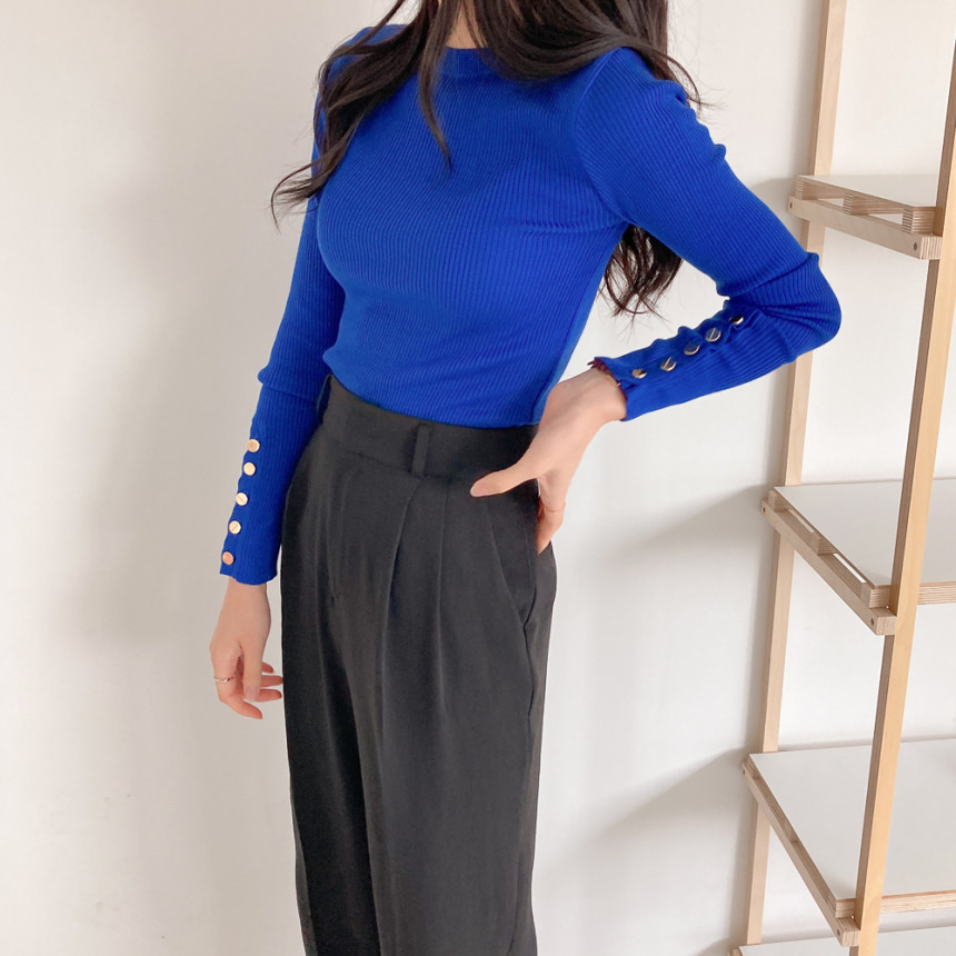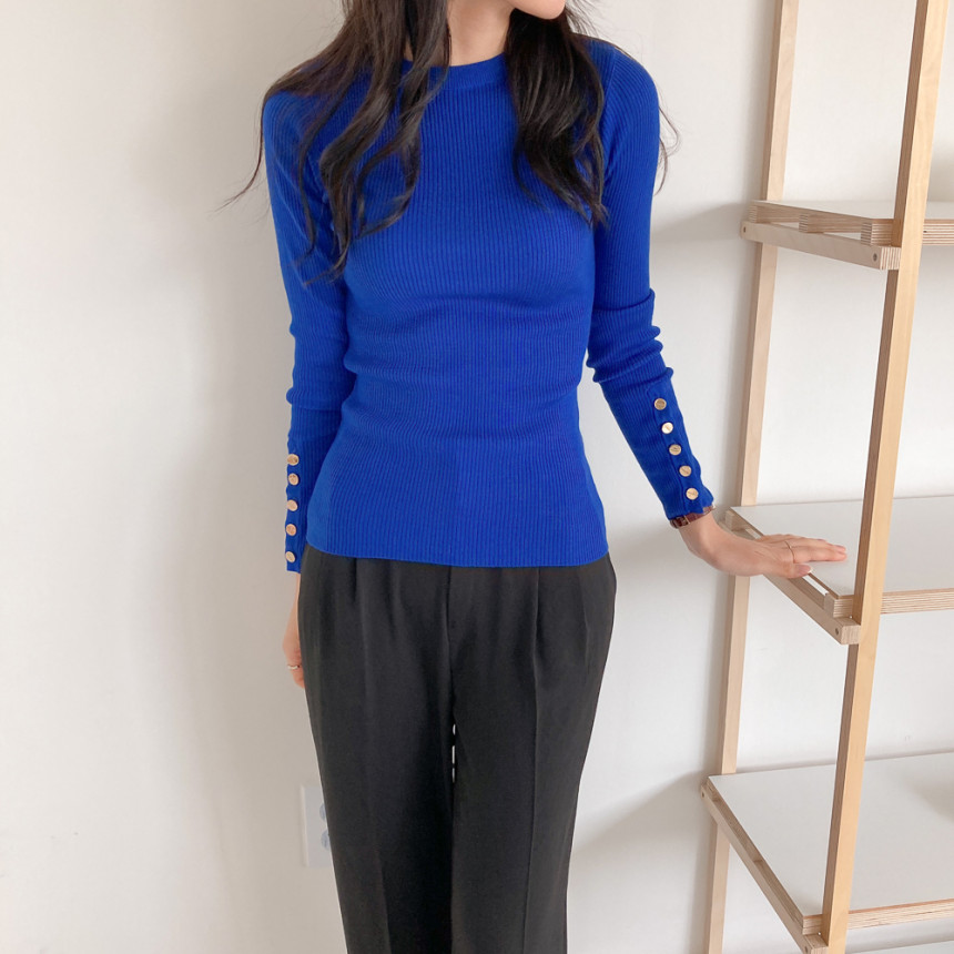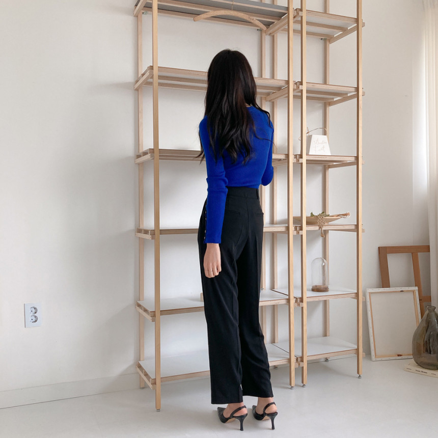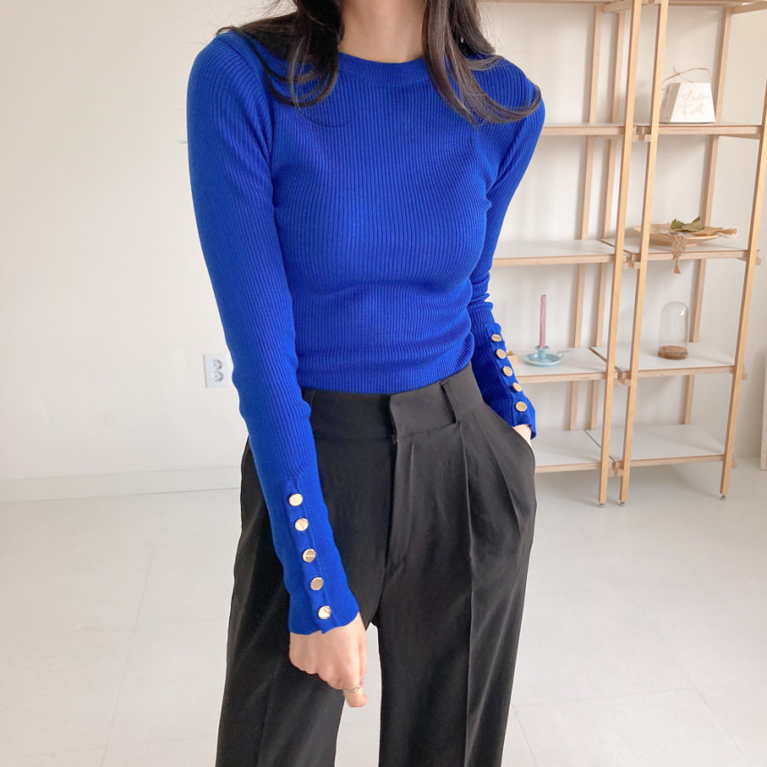 고급스럽고 시크한 라운드넥 긴팔 골지 니트예요.