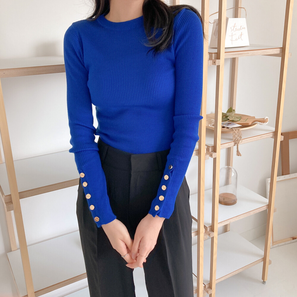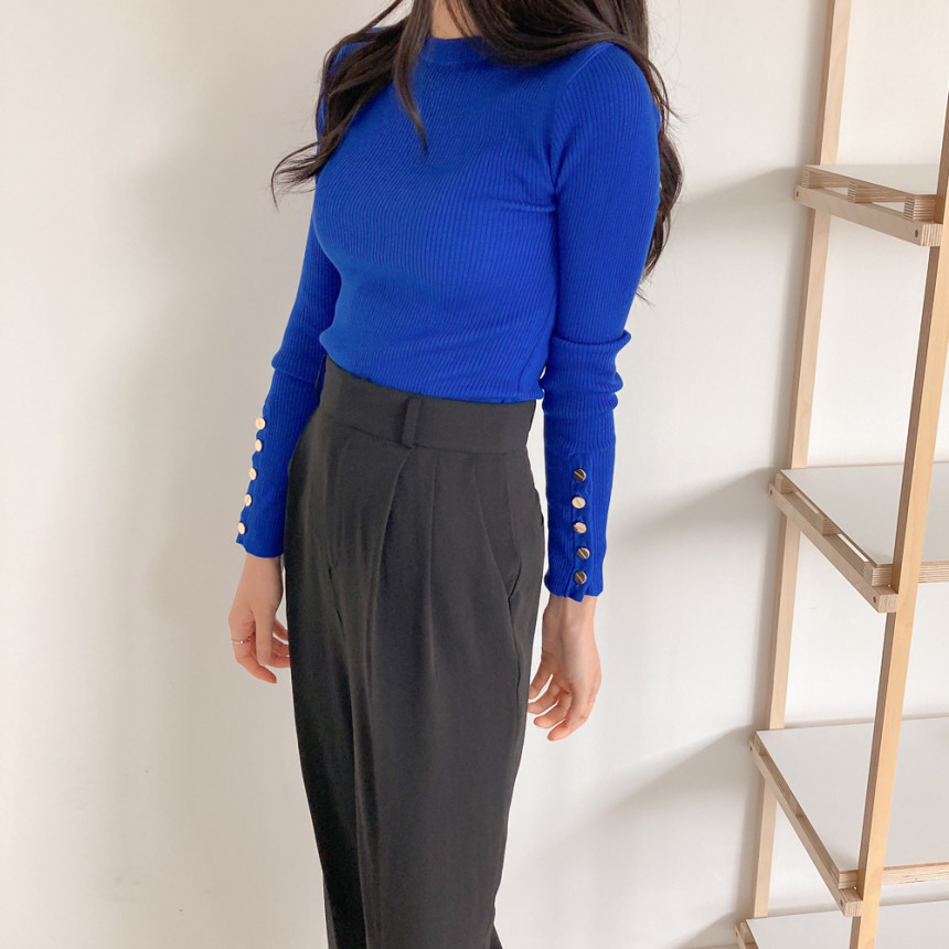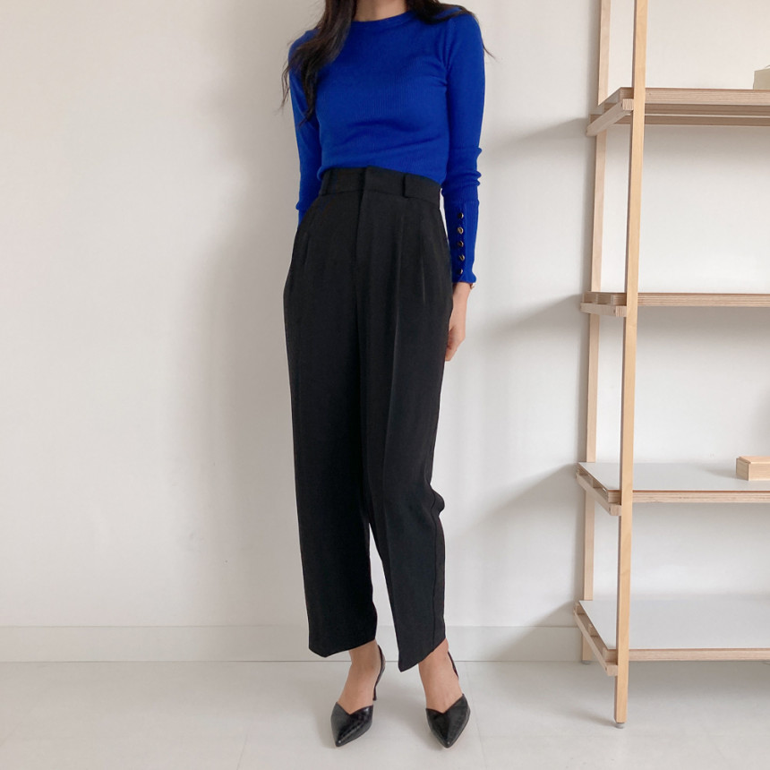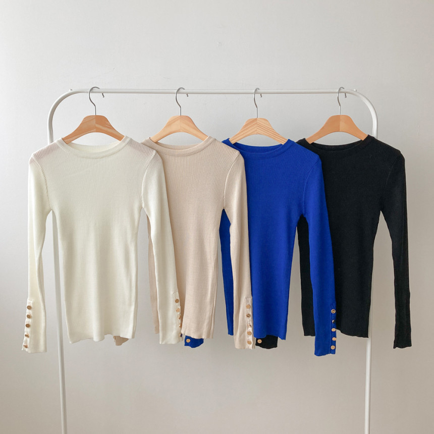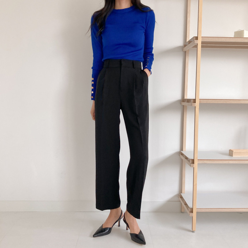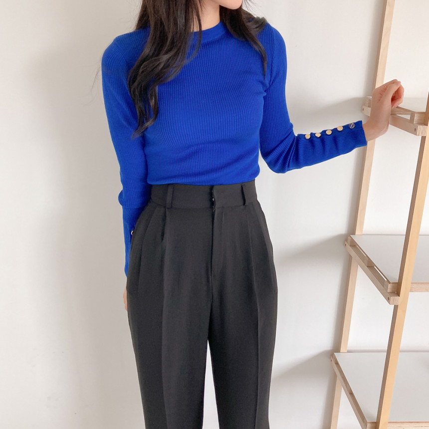 고급스럽고 시크한 라운드넥 긴팔 골지 니트예요.