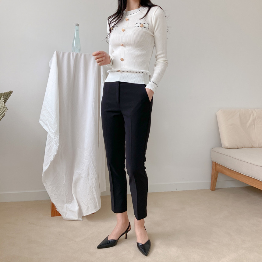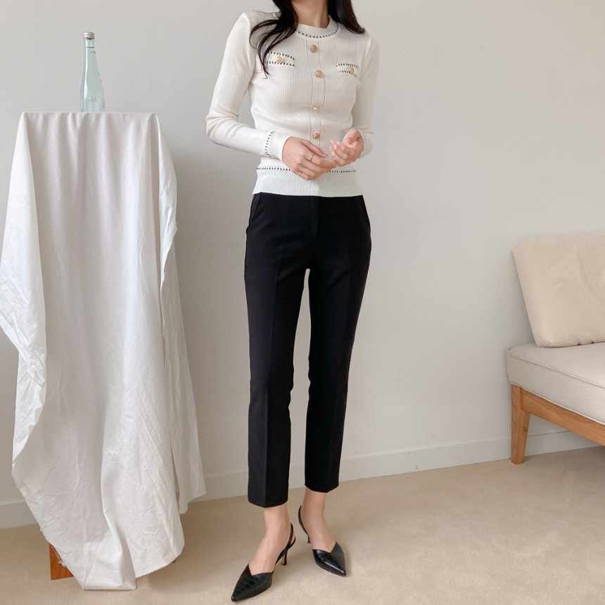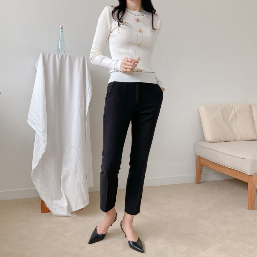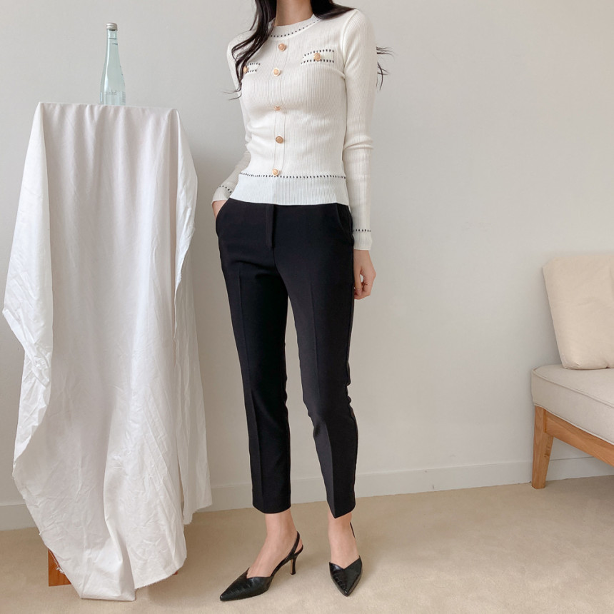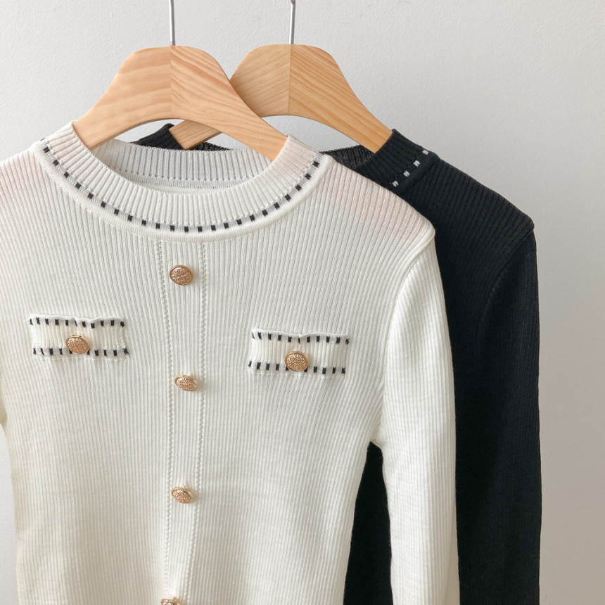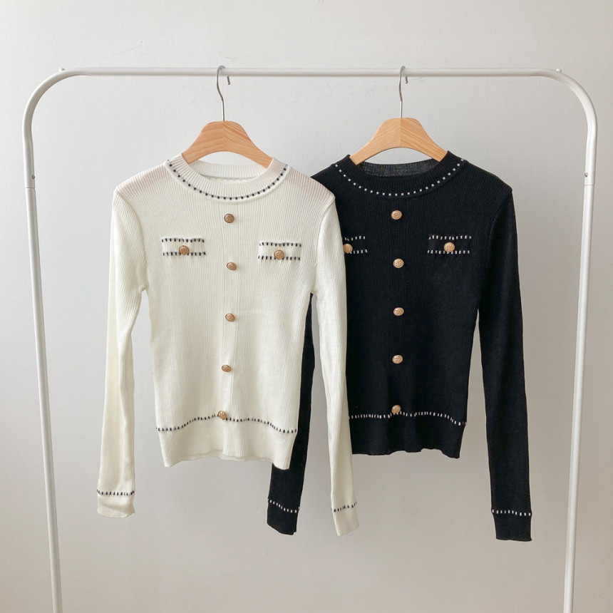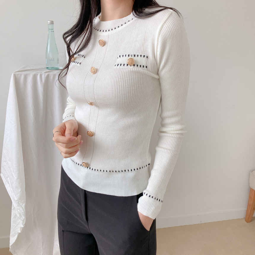 스티치금장버튼라운드니트_화이트