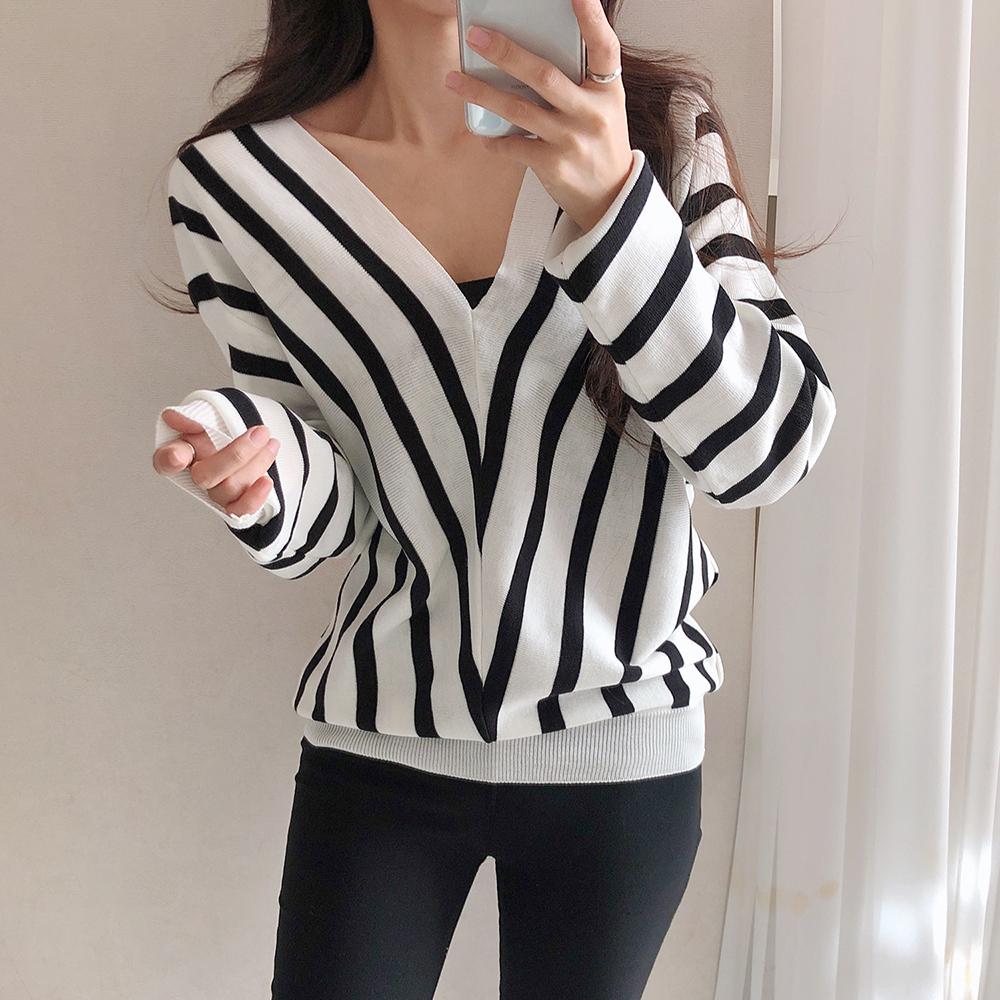 브이넥으로 넥 라인을 드러내며,
