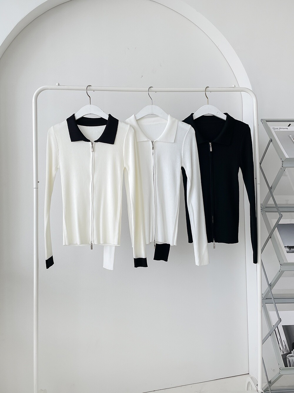 카라 블랙 + 화이트(전체옷색감) , 카라 화이트 + 화이트,