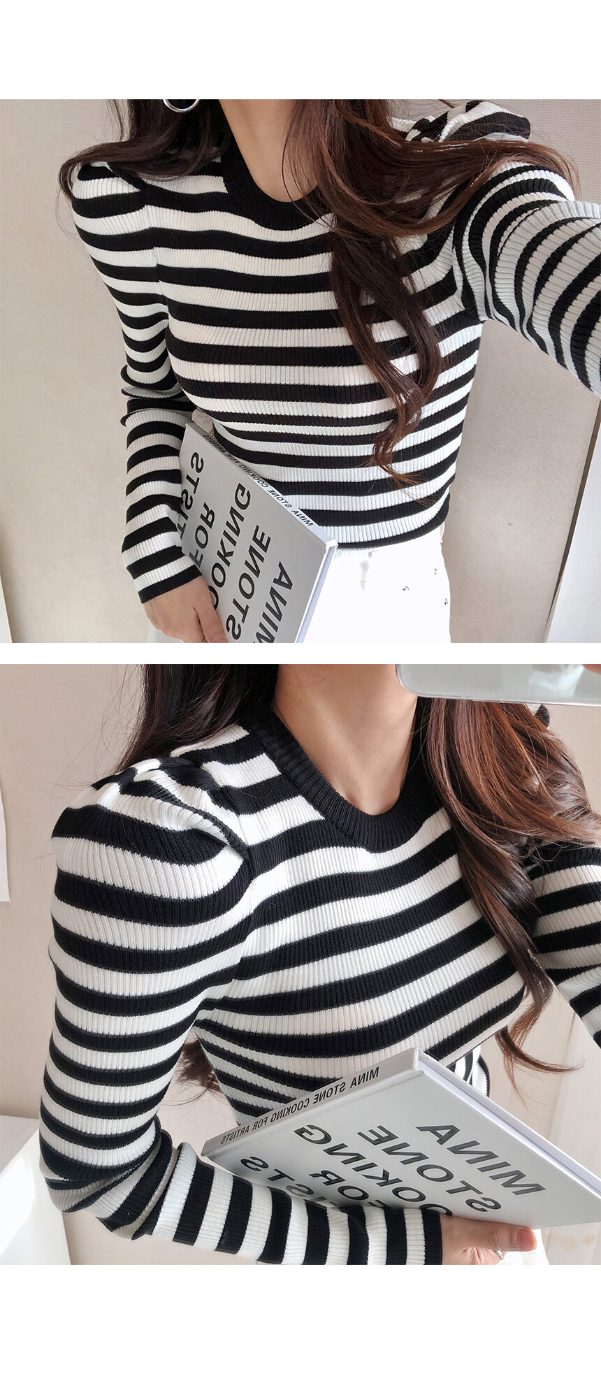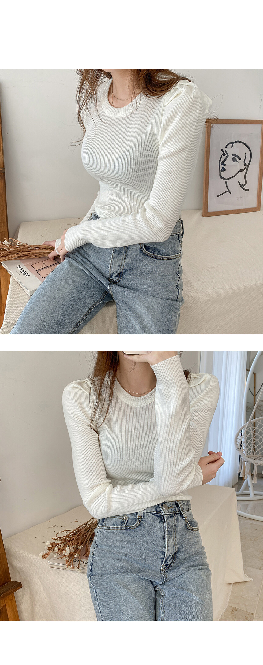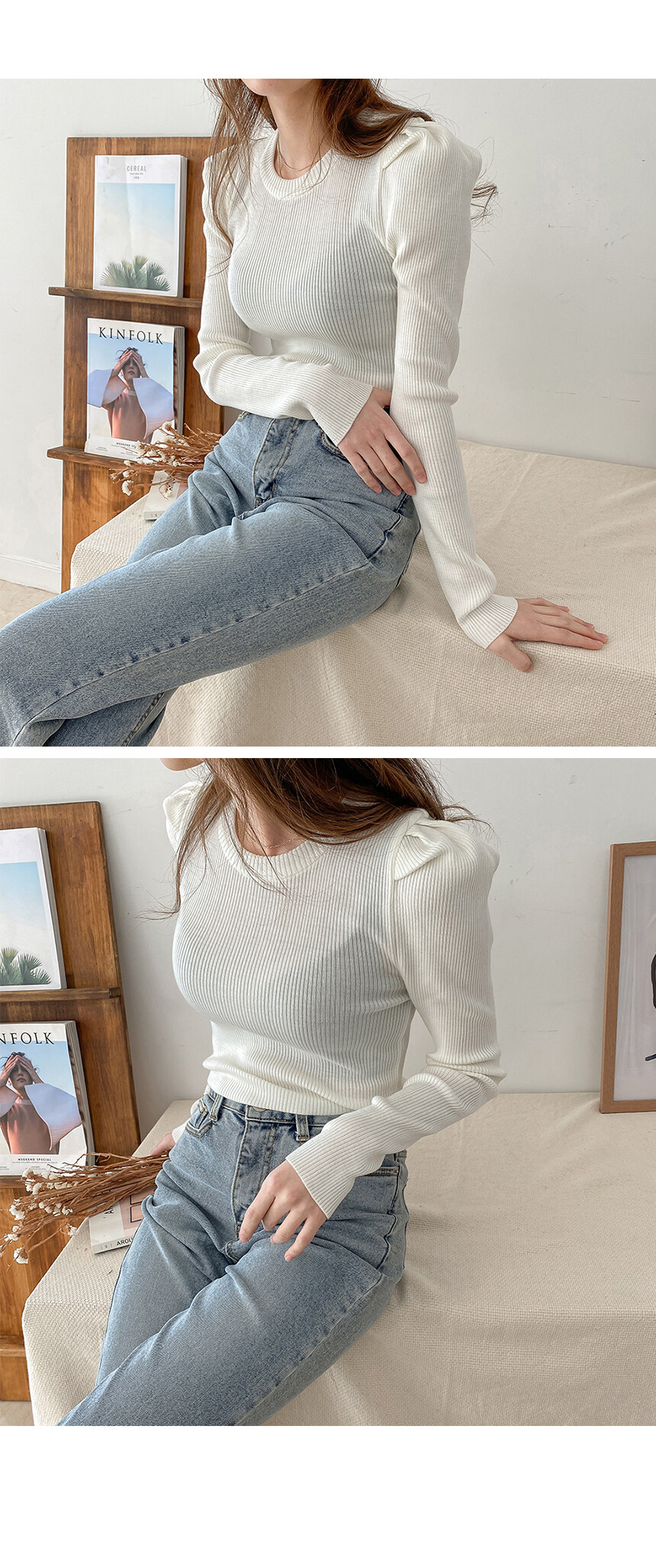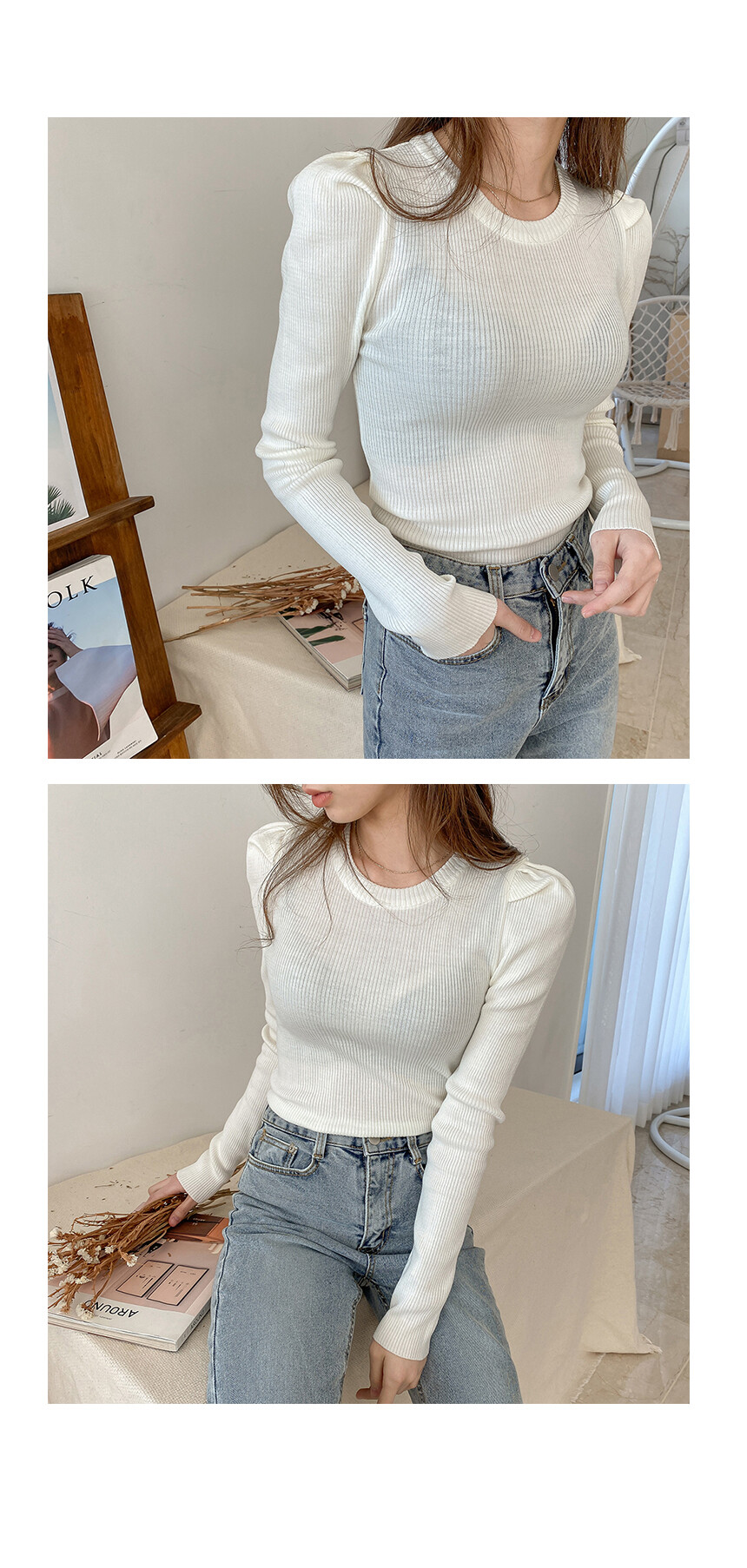 셔밍 라운드 퍼프 니트는