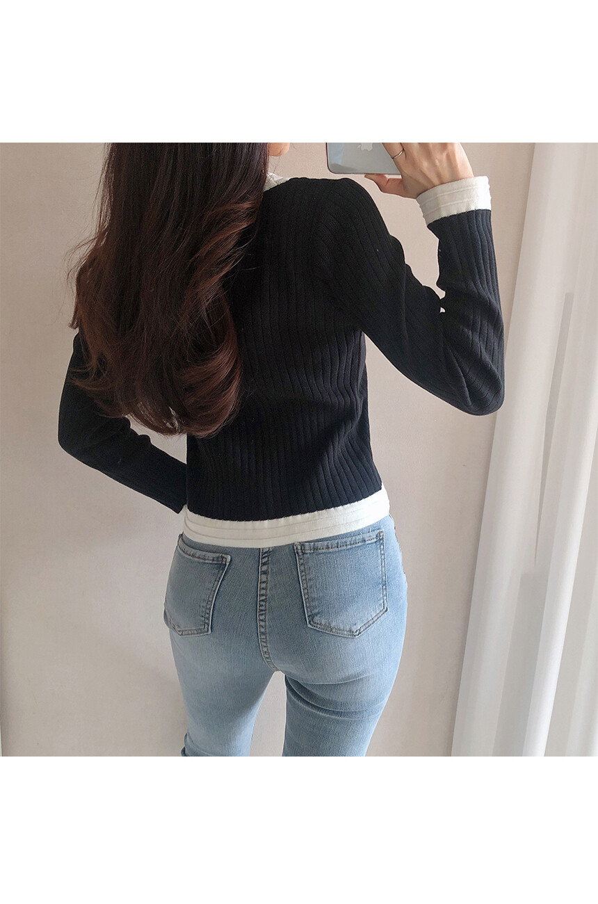 라운드넥과 소매 끝단에