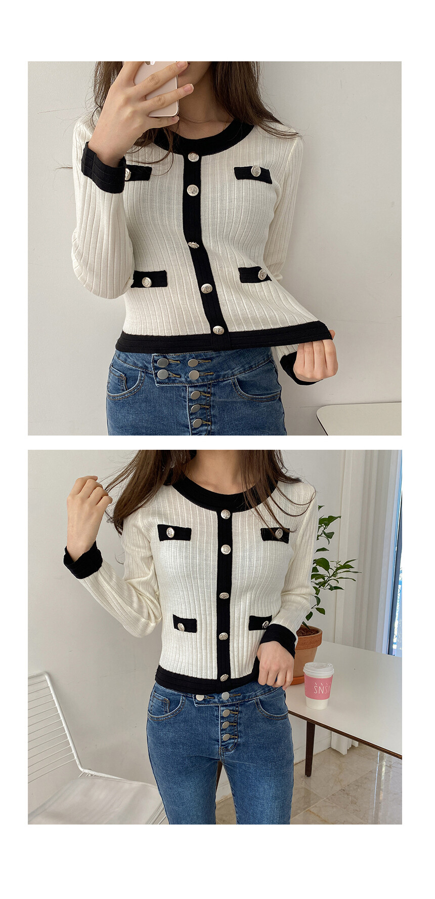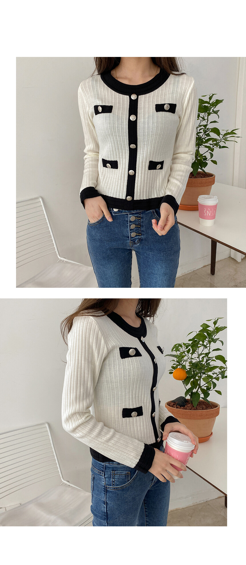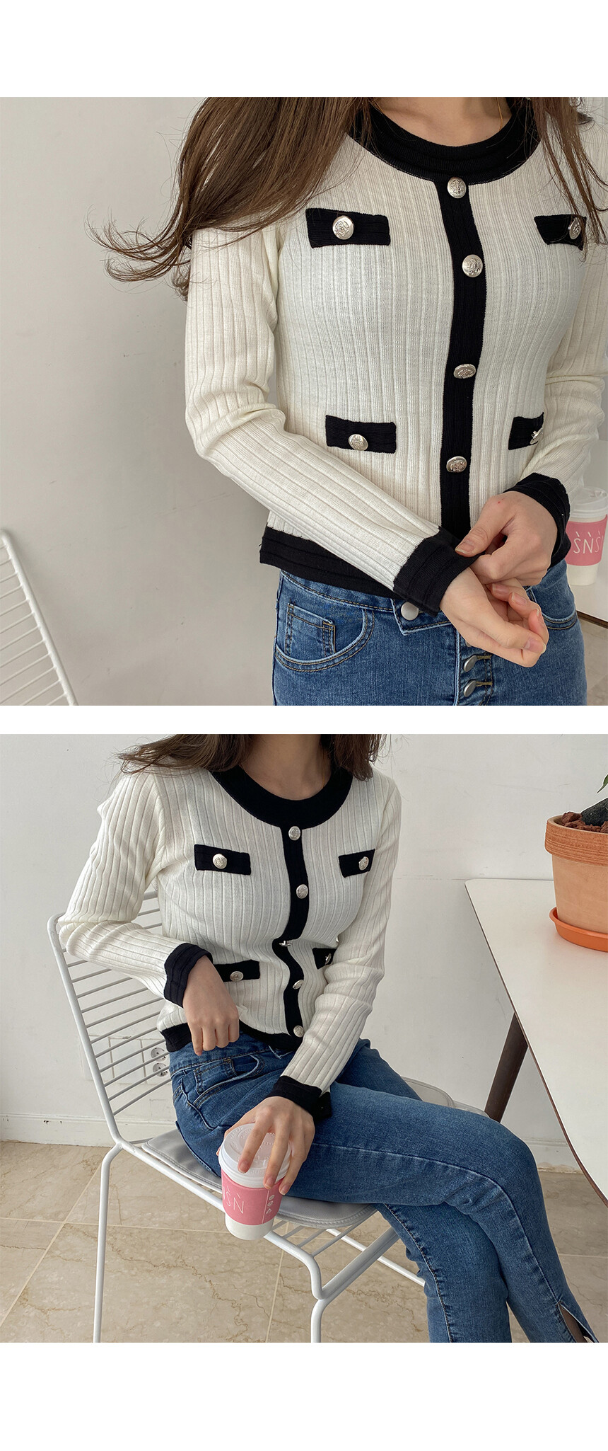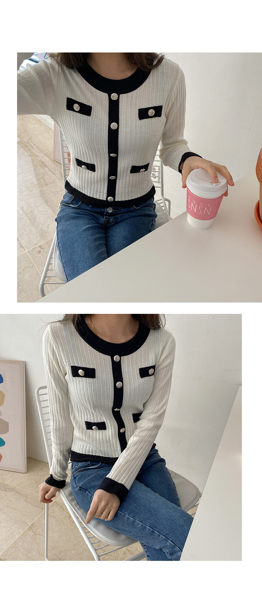 배색과 단추포인트가