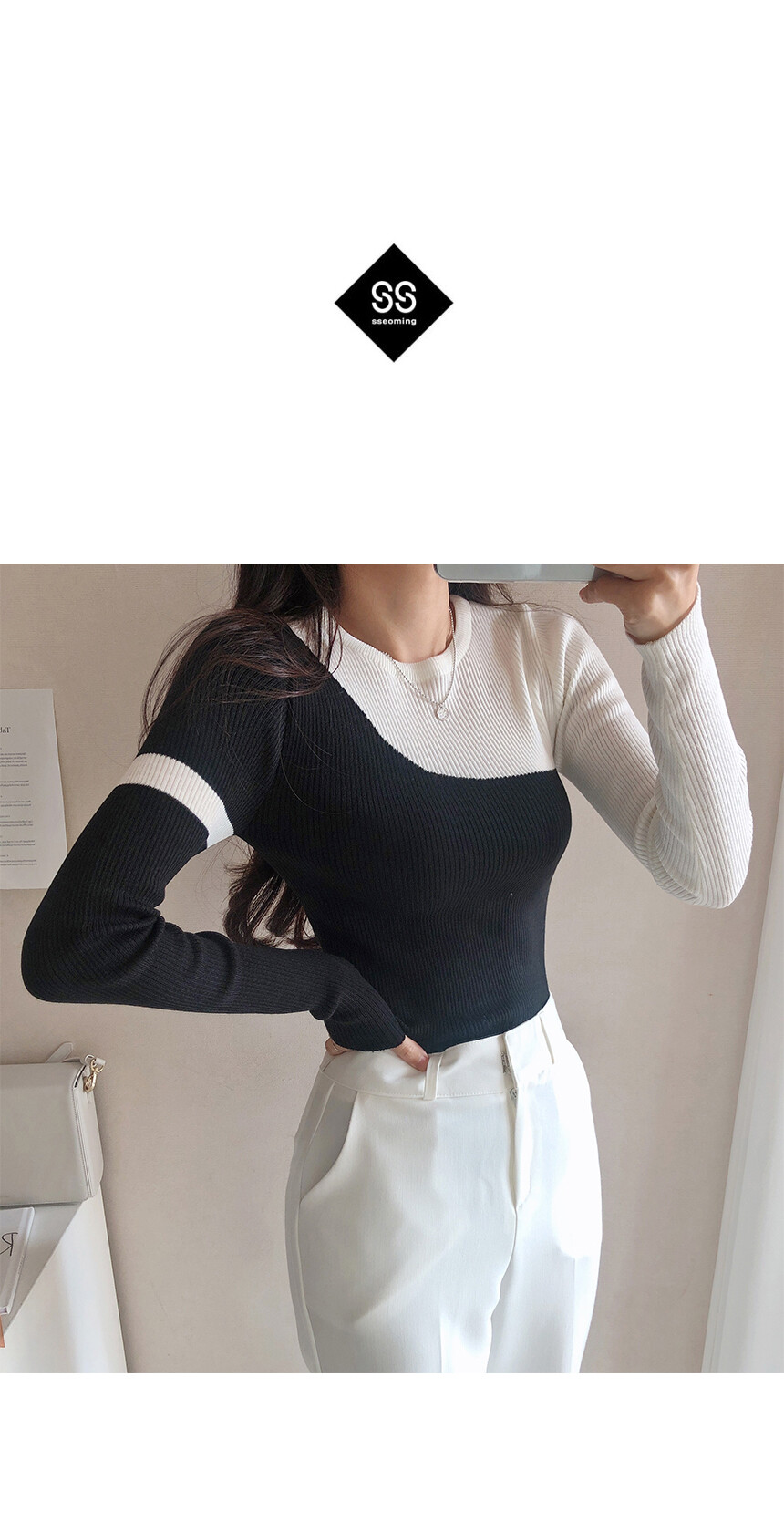 섹시한 라인의 라운드 니트입니다.