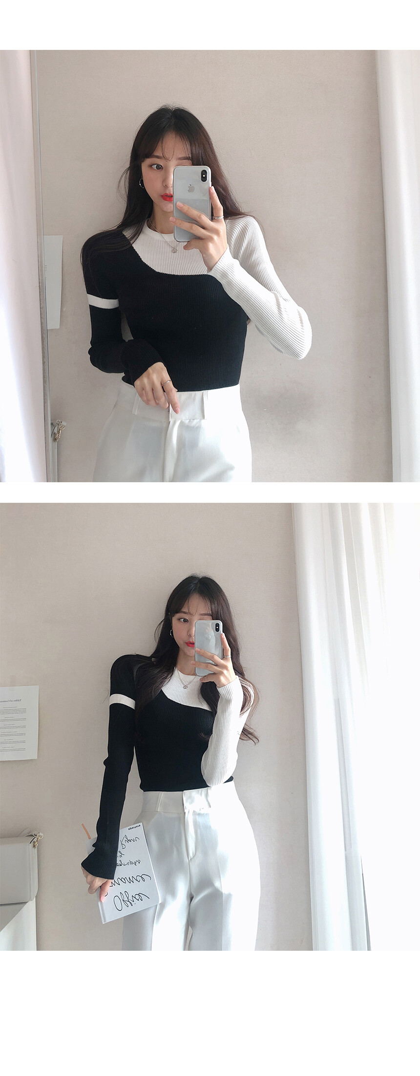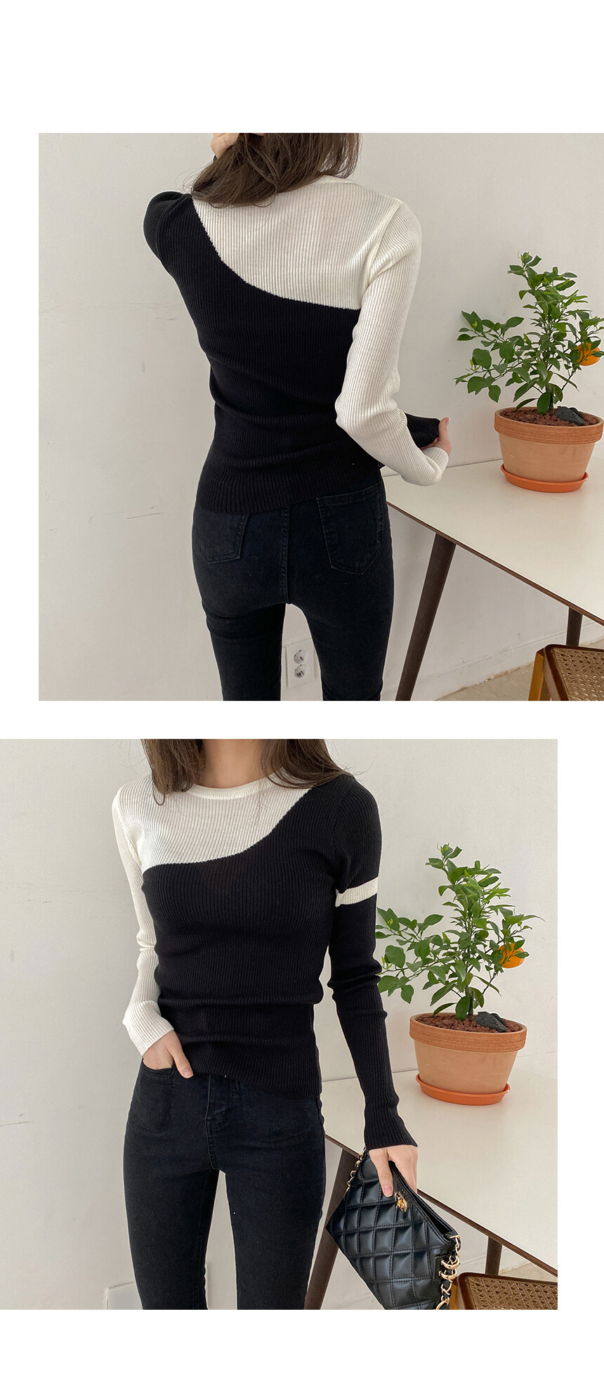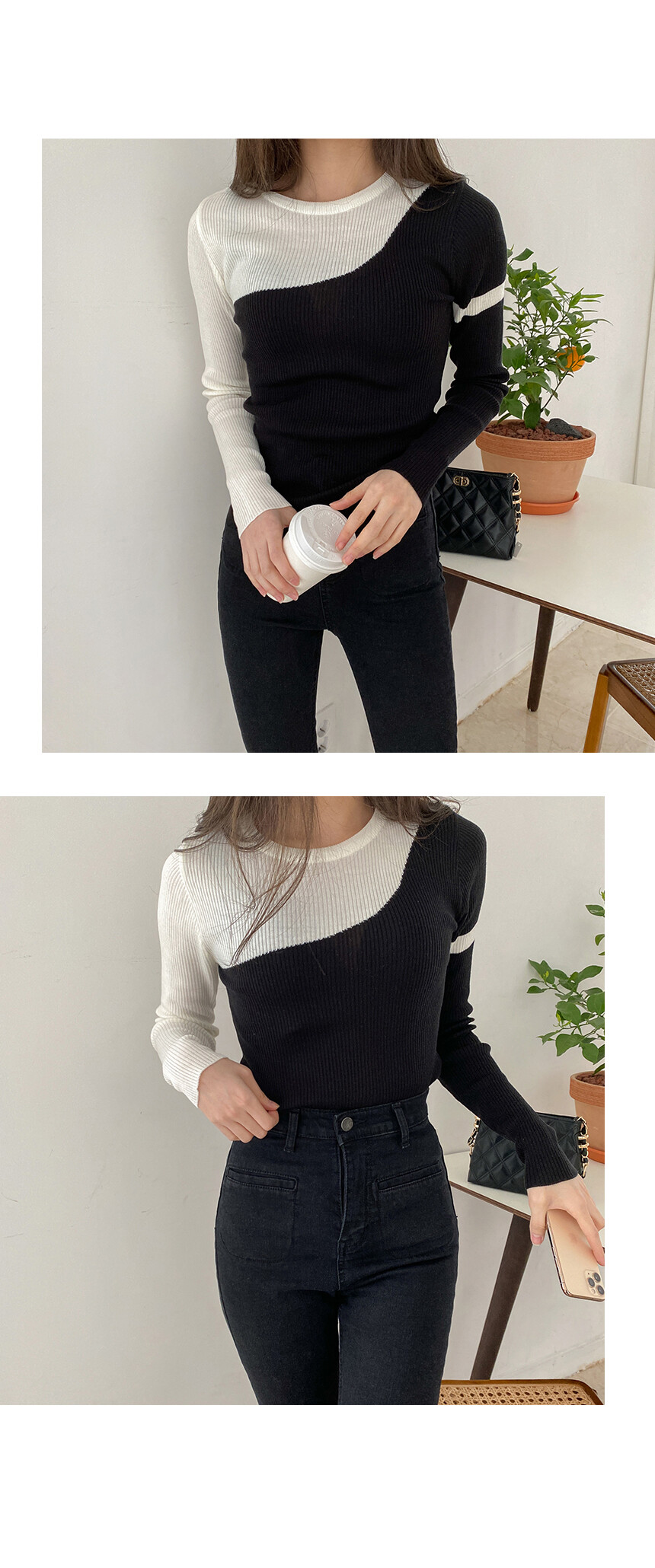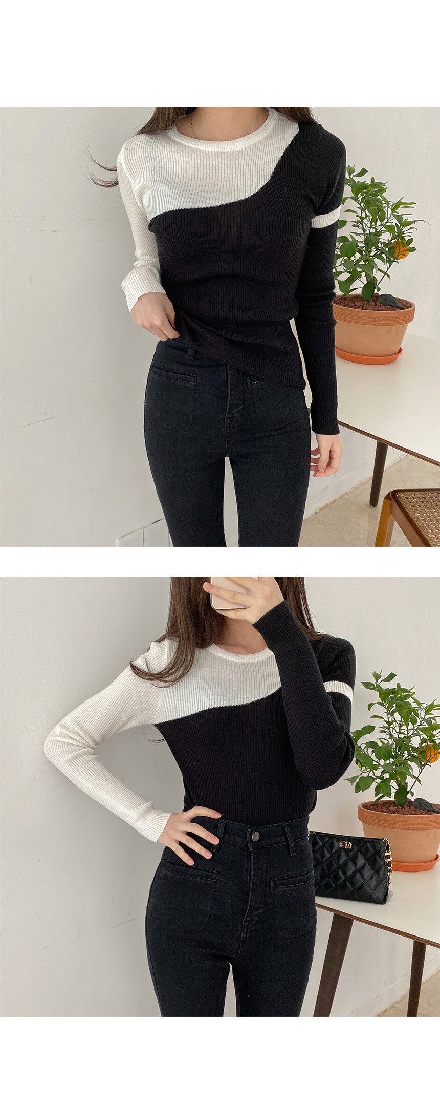 슬림하게 보여주는 니트예요.
