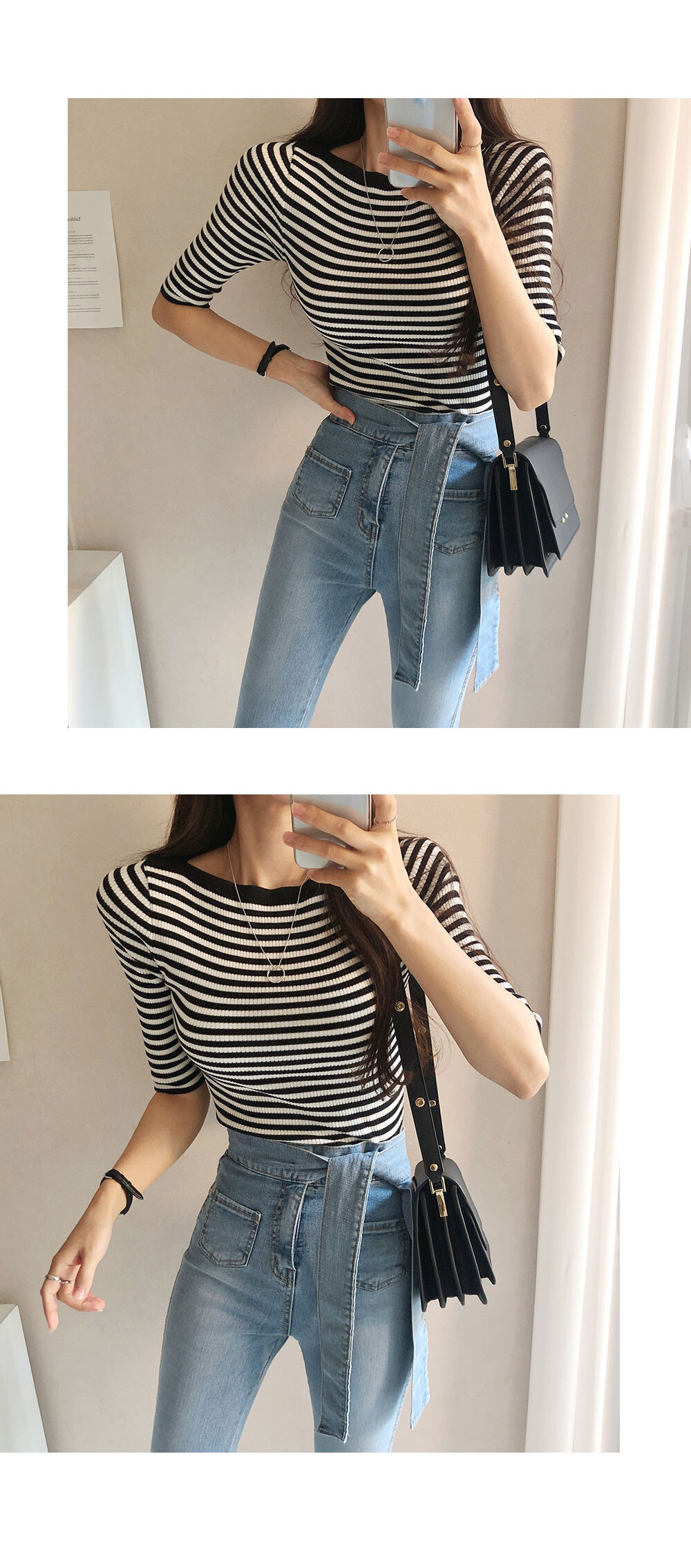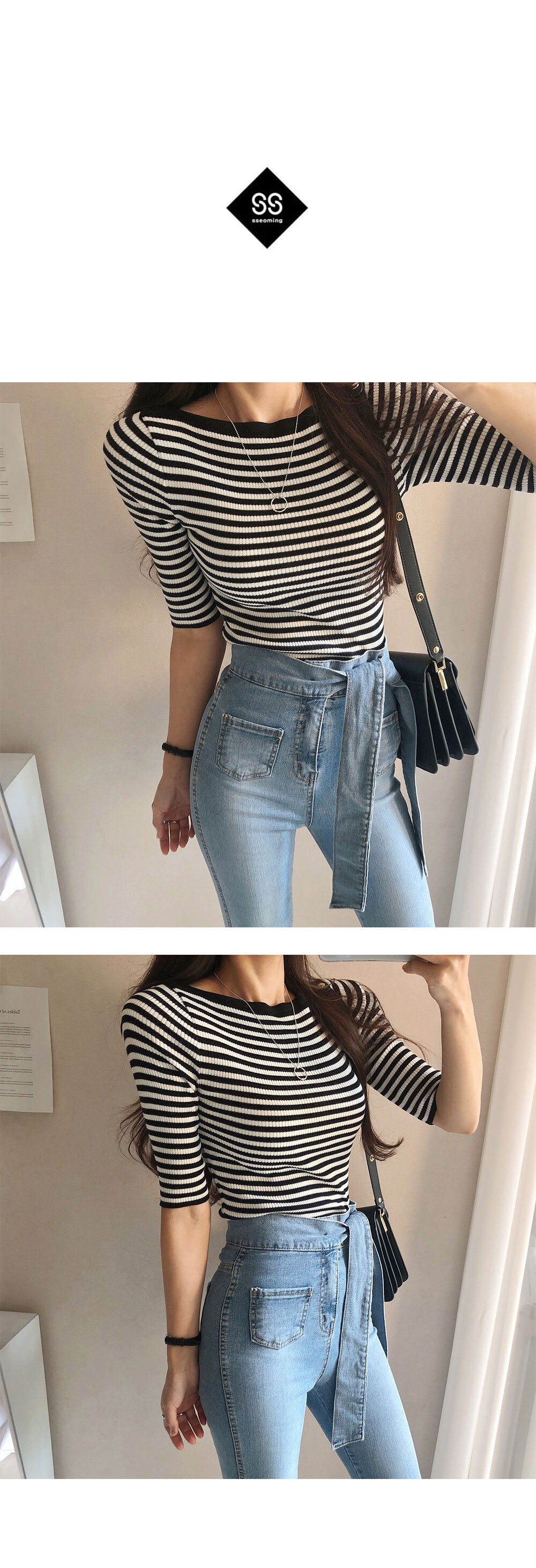 보트넥반팔니트는