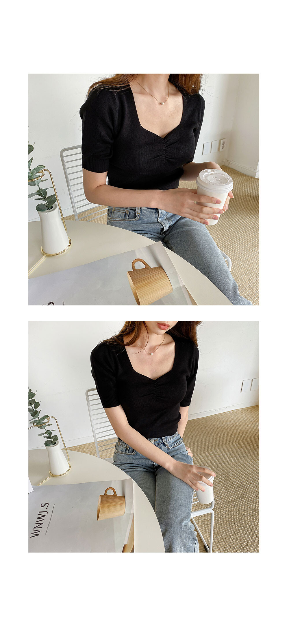 디테일한 라인들이 예쁜 반팔 니트예요.