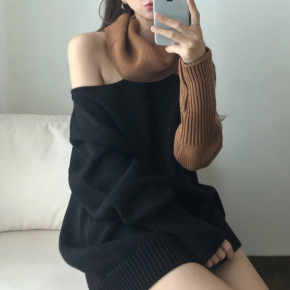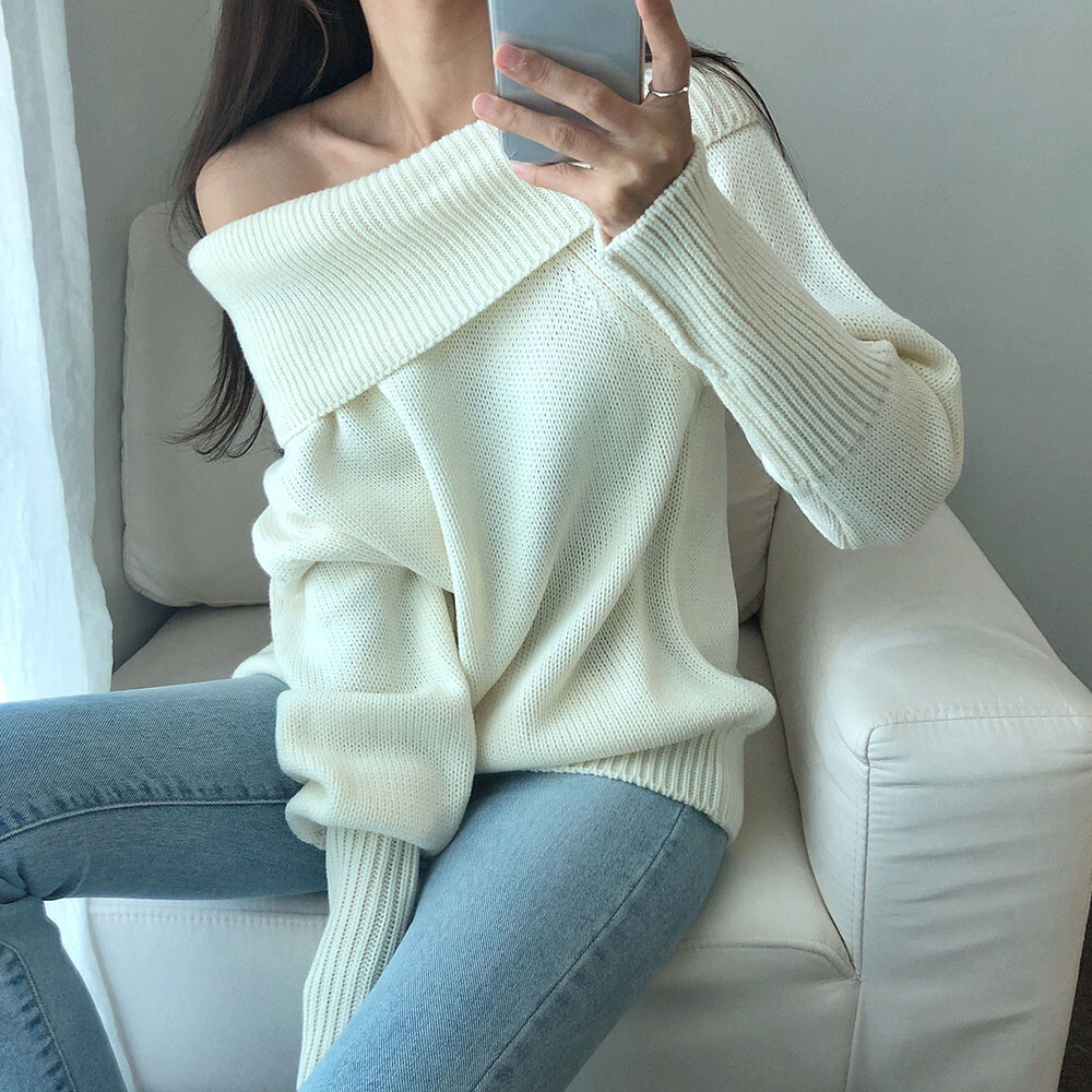 루즈한 핏과 오프숄더가 돋보이는 니트로,